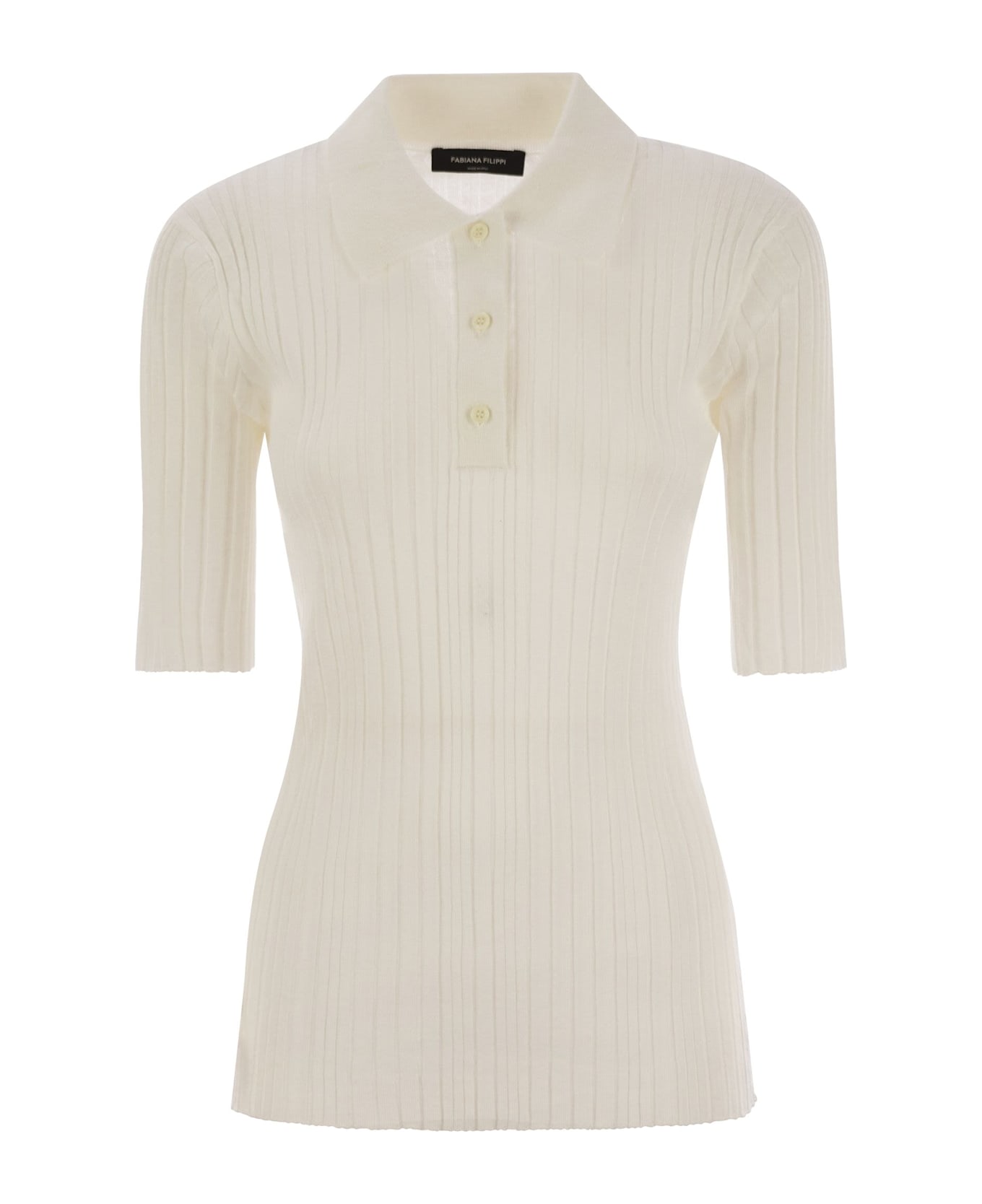 The refined light linen yarn enhances the slim line of this soft ribbed polo shirt, defined by the elbow-length sleeves. Made entirely in Italy using sustainable processes. - Lightweight linen - Ribbed - Polo collar DESIGNER ID: MAD275F507D856 0142 Composition: 64% Linen, 36% Cotton