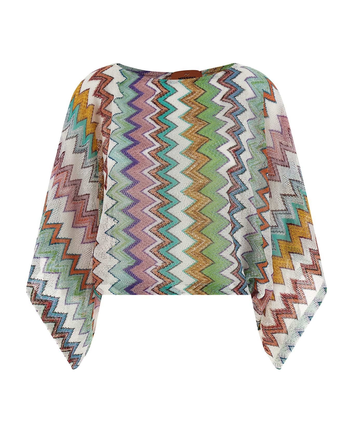 Viscose top in zigzag pattern knitted with lamé thread, round neckline, wide short bat sleeves.
