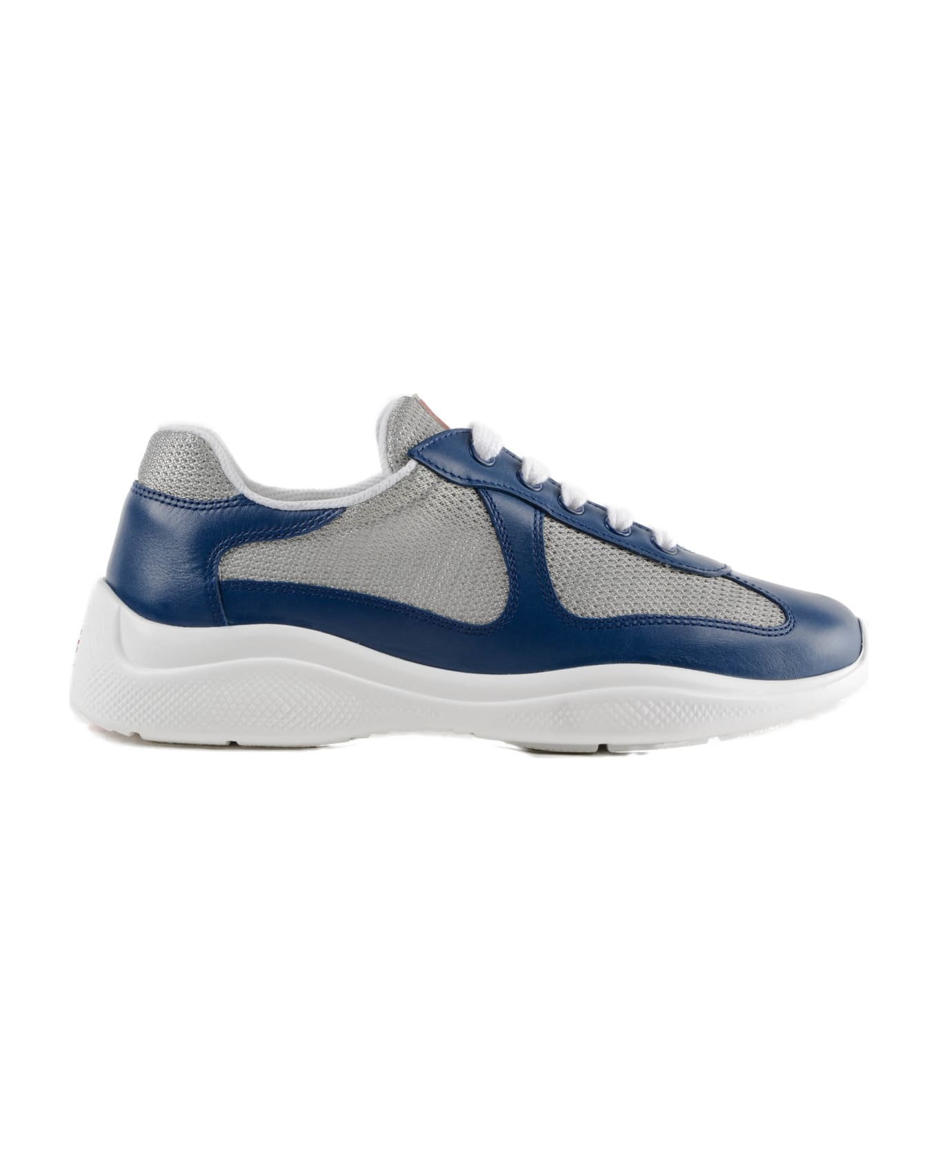 Plume+Bike Sneakers from Prada: Bluette Plume+Bike Sneakers with round toe, rubber sole, lace up fastening, branded insole and logo details at tongue.