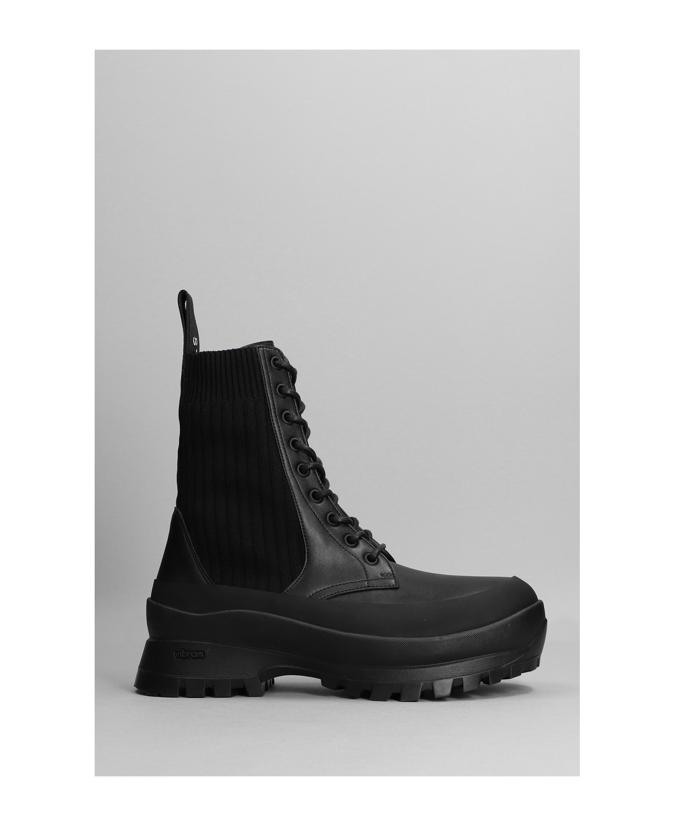 Trace sport Combat boots in black faux leather, almond toe, laces, mesh details, socks design, logo on heel, 100% artificial leather, rubber outsole, Made in Italy