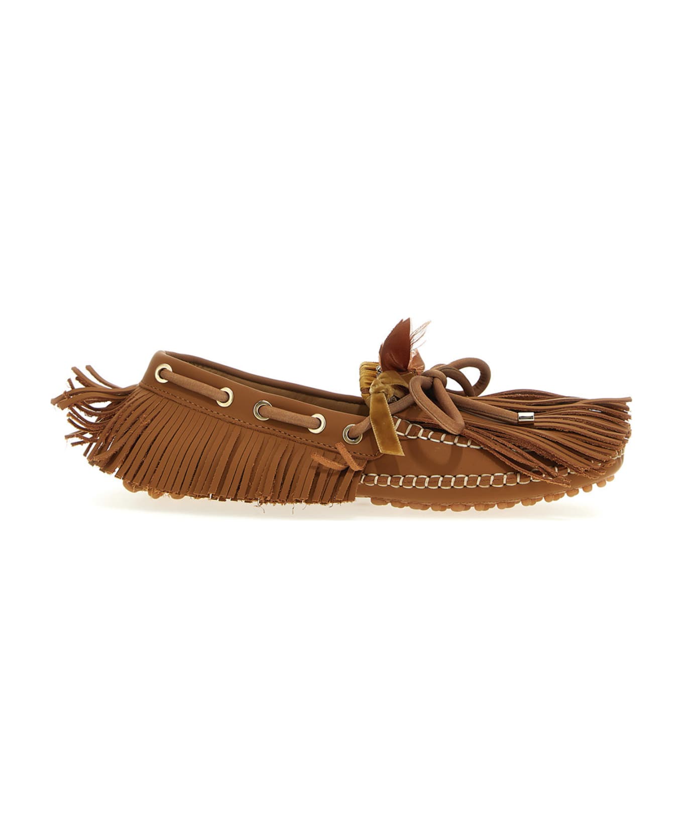 Puli' leather loafers with crystal appliqué fringes, synthetic fabric bow at the front and a leather sole with gommini.