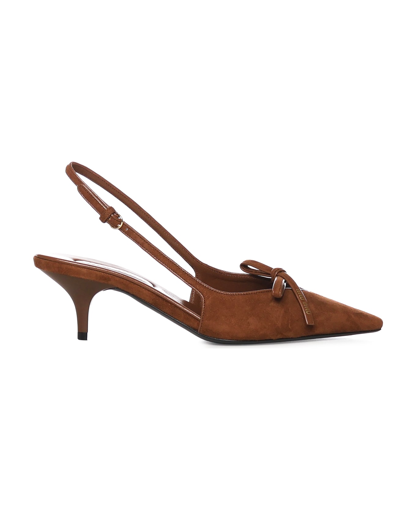 -Suede upper -Bow with logo lettering -Leather sole -55 mm heel -Made in Italy -Designer color: Oak