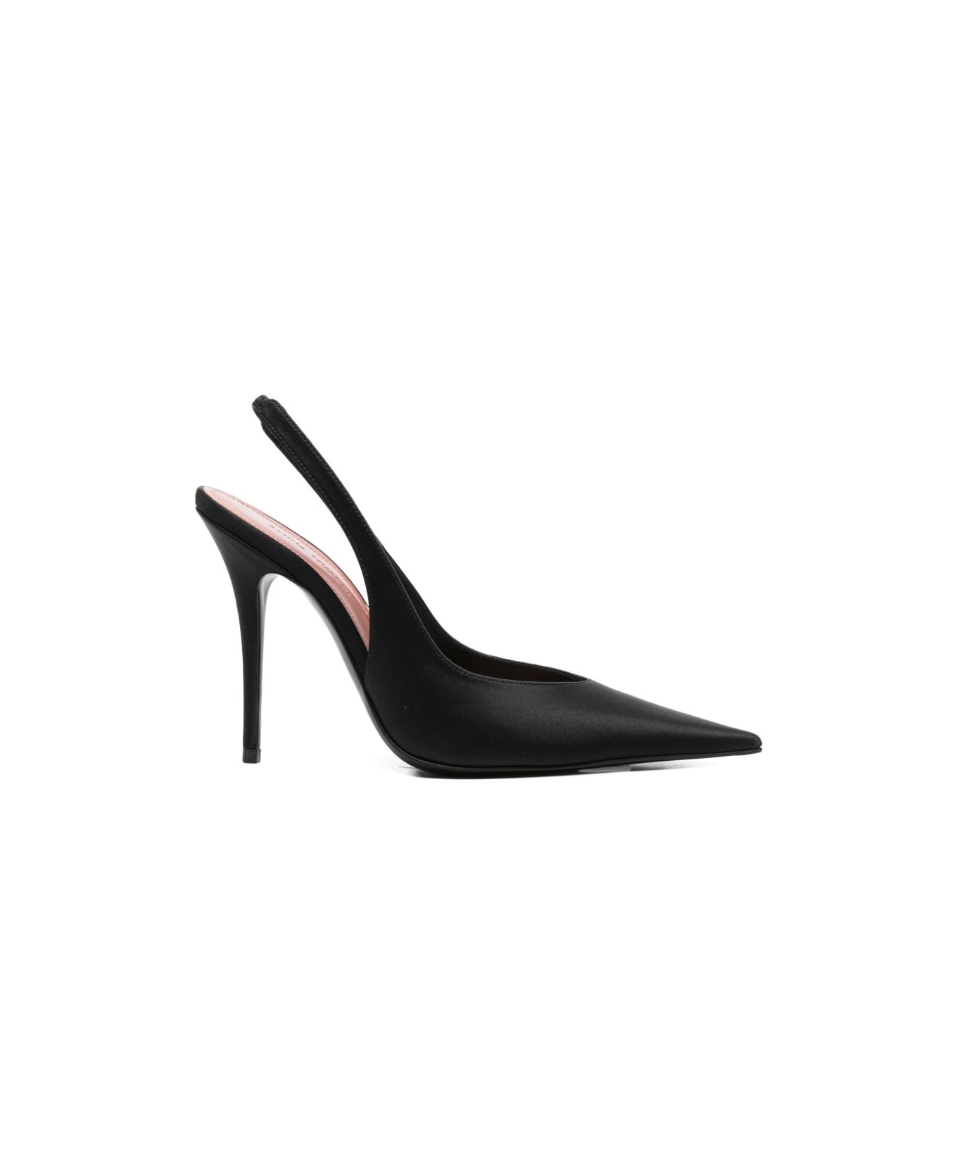 black satin finish slingback strap pointed toe This piece comes complete with a protective dust bag.