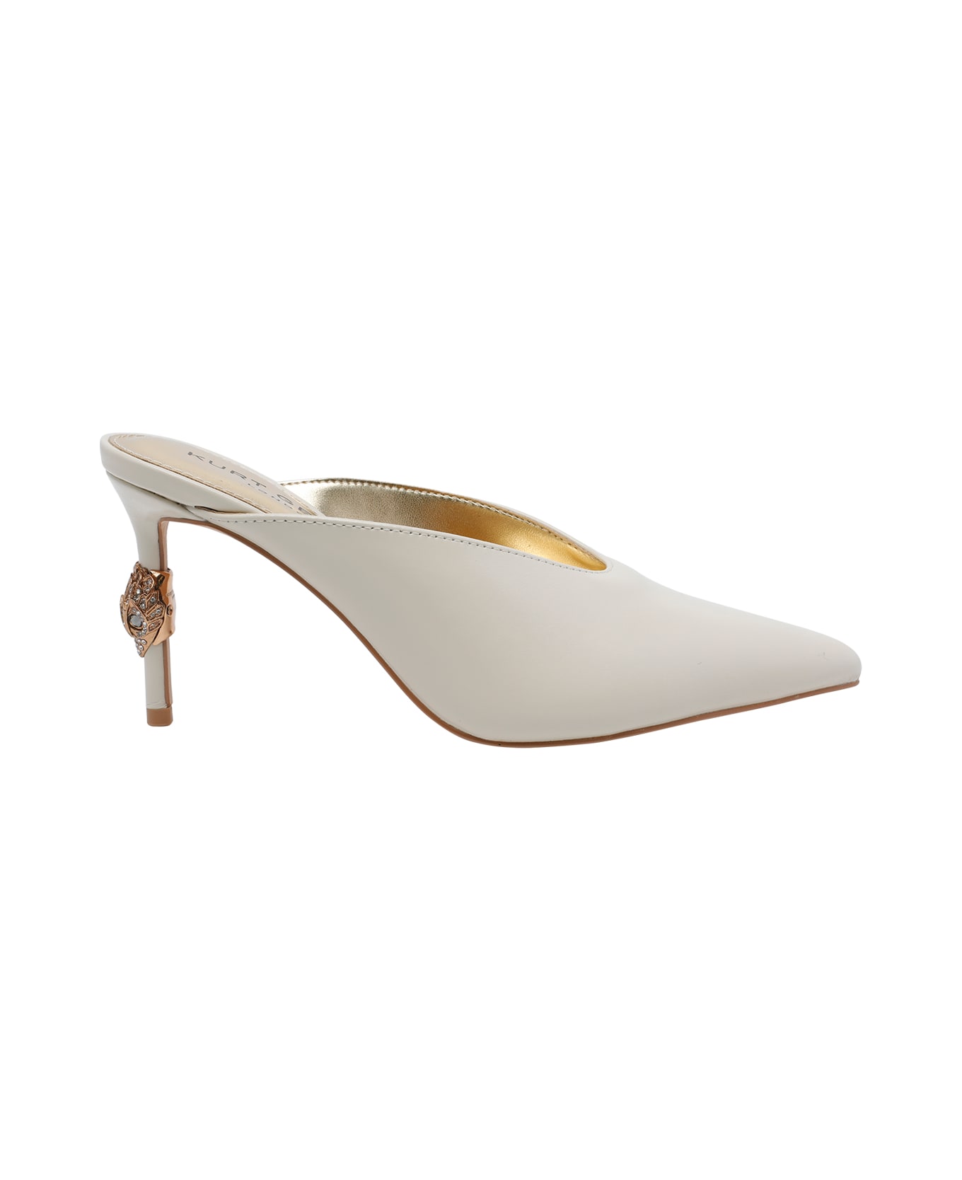 Kurt Geiger white Eagle closed mules, pointed toe, logo detail on the heel