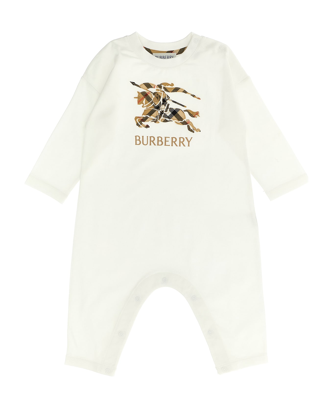'Jonson' cotton jersey jumpsuit, Burberry Check 'Equestrian Knight Design' embroidery and front logo print, crew neck, snap buttons on the left shoulder, long cuffed sleeves, snap button closure in the crotch. Composition: 100% cotton
