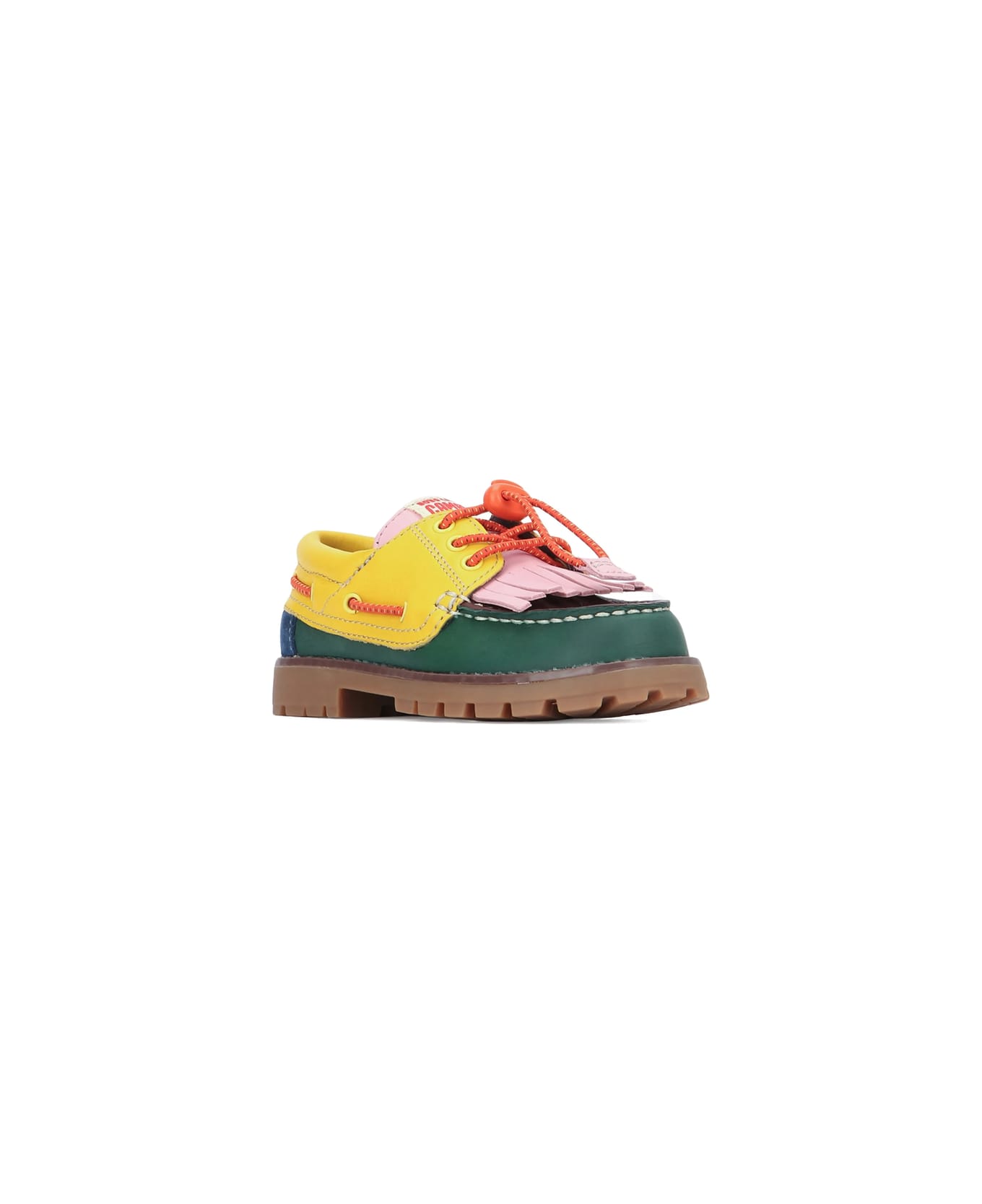 yellow leather upper boat shoe design tassel detail lace-up fastening rubber sole