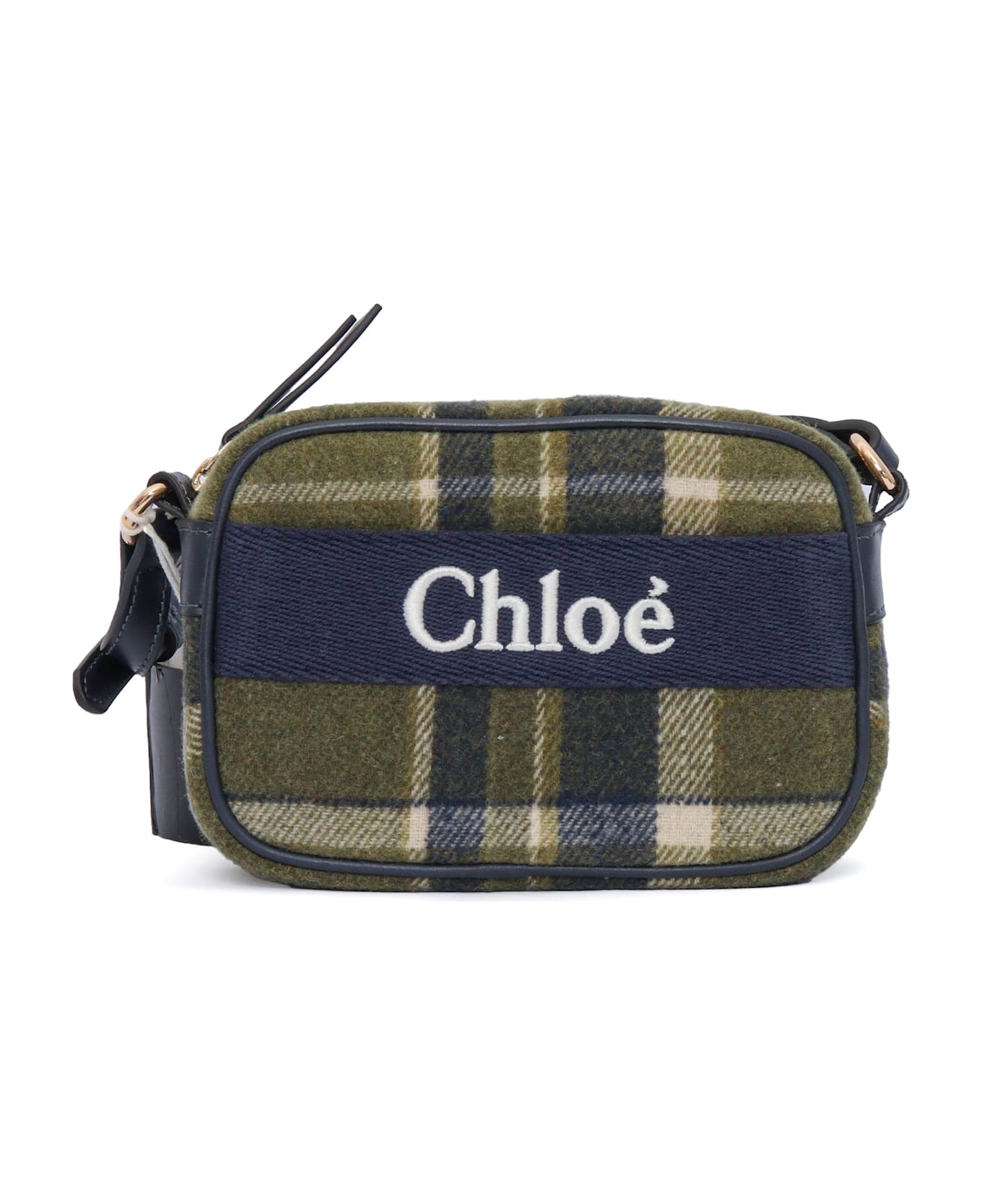 Checked shoulder bag, cow leather strap and details (chrome tanning), cotton twill lining, zip closure on top and Chlo embroidered logo on front. Dimensions: 16x11x5cm. Strap length: 90cm Composition: 100% POLYESTER FABRIC 2 100% COTTON