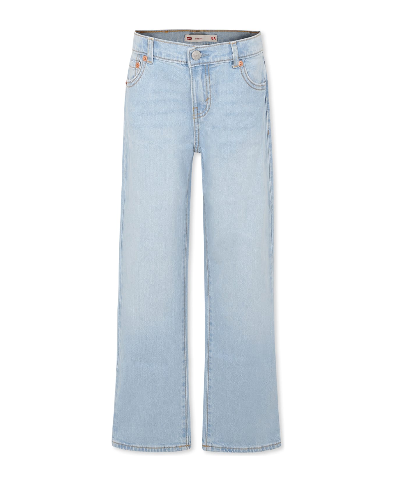 Denim five-pocket jeans, with belt loops, adjustable waist thanks to the internal elastic bands with buttons, front closure with button and hook. They are embellished with a logo patch on the back.