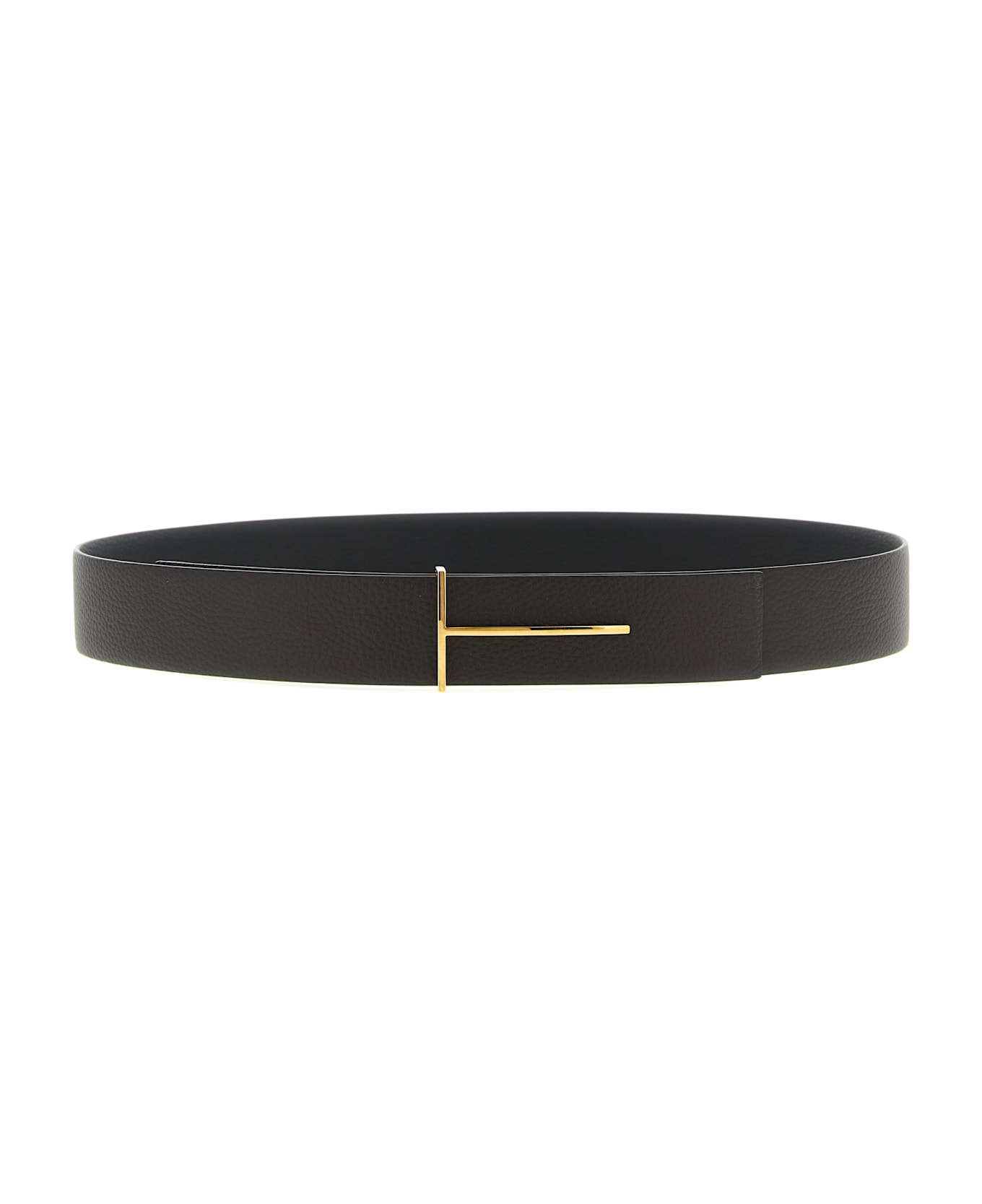 Reversible belt in soft hammered leather, adjustable with 'Slim T' metal buckle with gold trim. Composition: 100% calfskin leather (Bos Taurus)