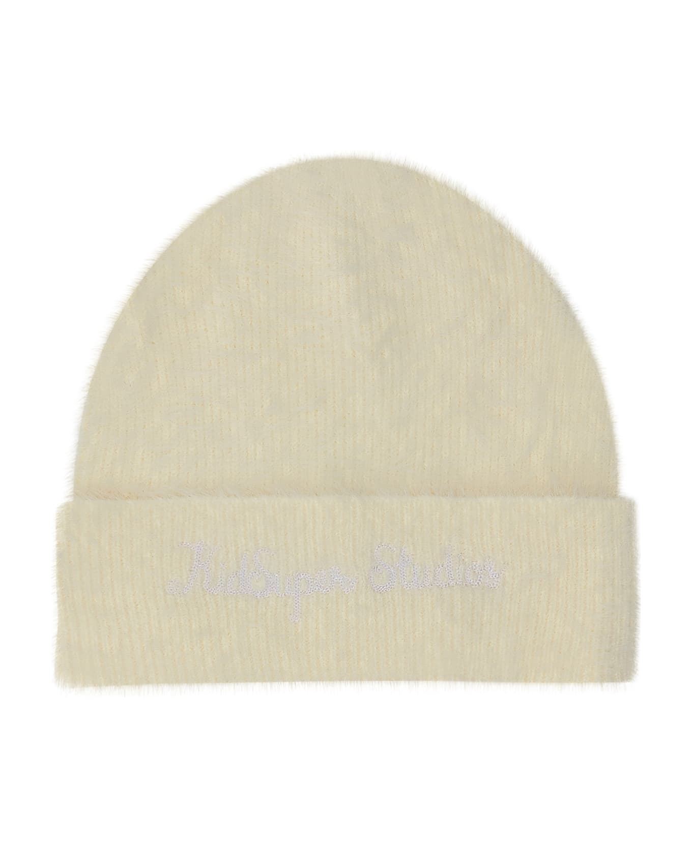 White teddy effect cap. Embroidered logo on the front.