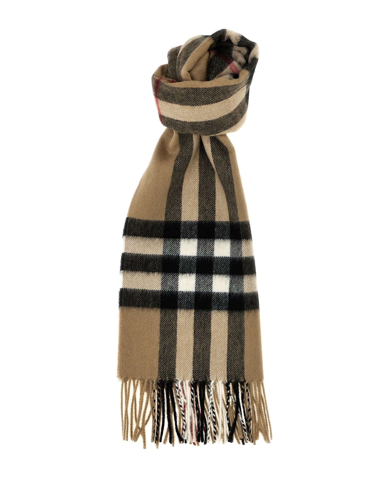 Burberry Check print cashmere scarf with fringes. Composition: 100% cashmere