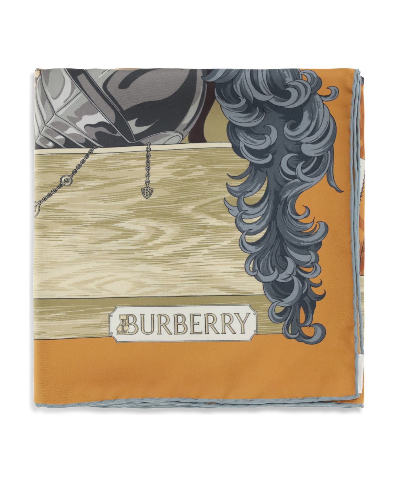 The wardrobe scarf by burberry, crafted from silk twill, is an elegant and distinctive accessory. the hand-drawn graphic features iconic elements from a classic burberry wardrobe, while the hand-rolled edges and printed burberry lettering complete the design, making it perfect for adding a touch of sophistication to any look.
