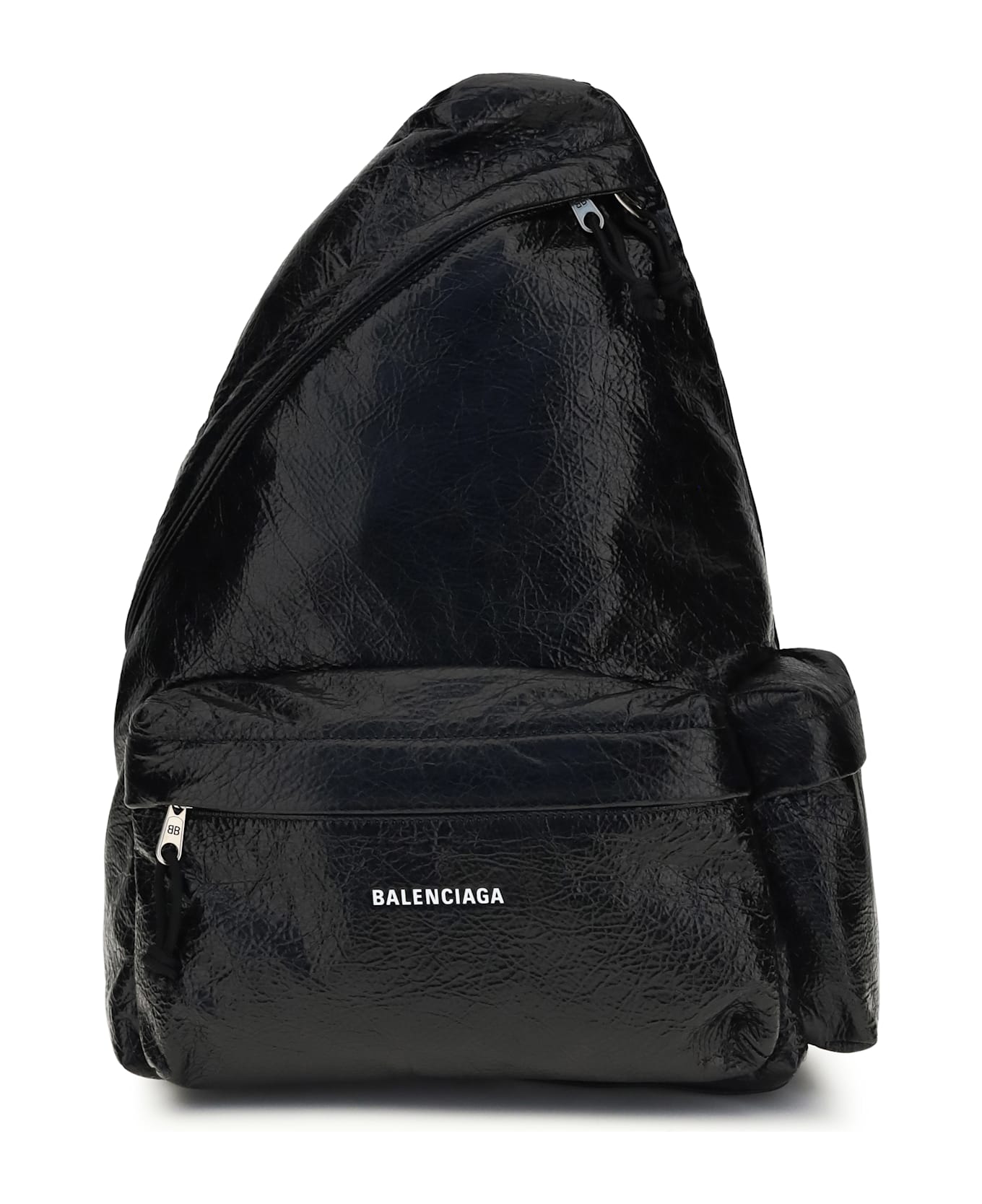 The explorer asymmetric backpack by balenciaga combines contemporary design with urban functionality. featuring an adjustable strap, front zip pocket, logo detail, and double-zip closure, it offers practicality and distinctive style, perfect for completing modern, dynamic looks.