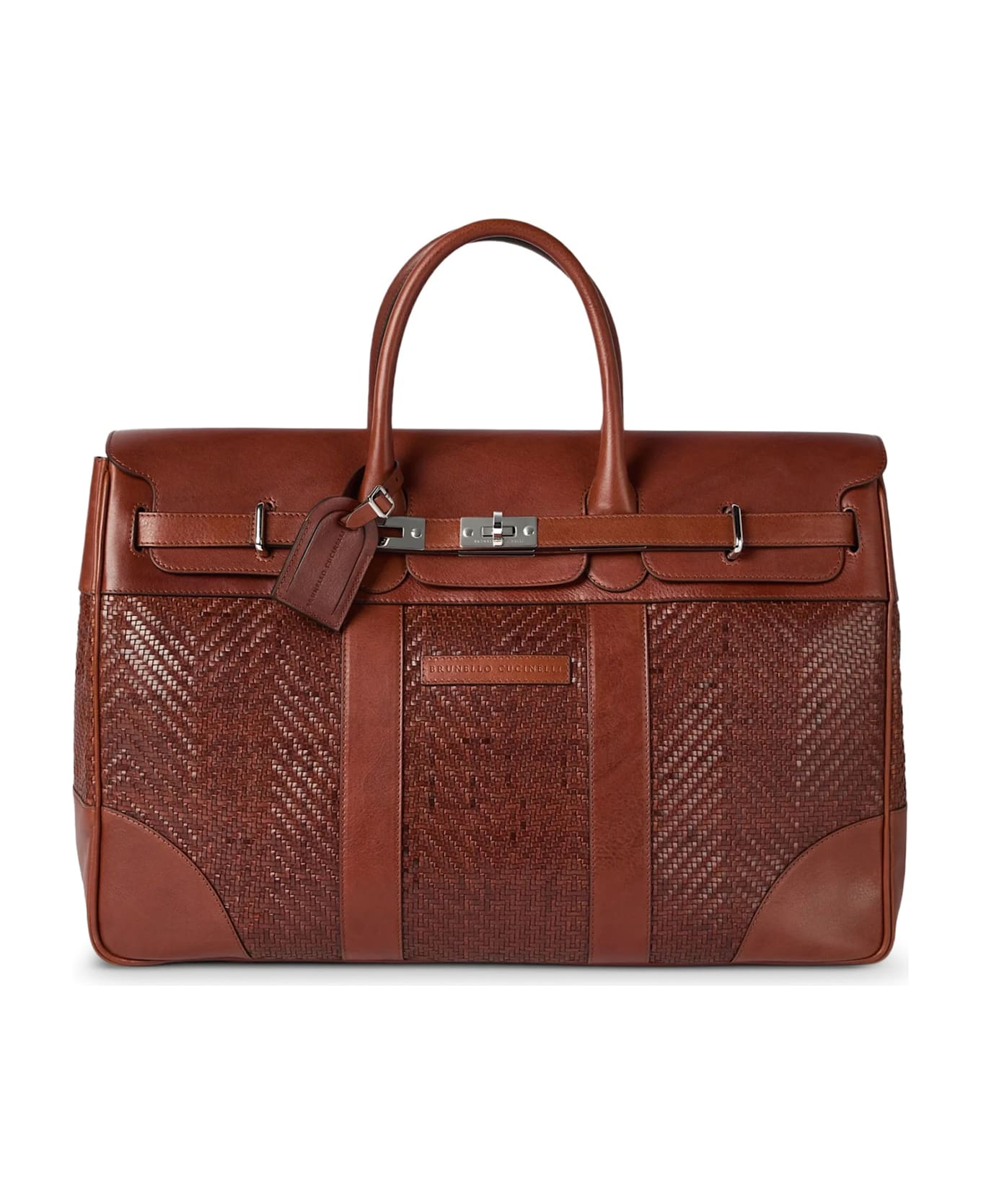 Double leather handle Metal twist lock closure Internal zip pocket Internal lining Made in Italy Leather W: 53 cm, H: 34 cm, D: 20 cm SKU: MBXOBU071C9186