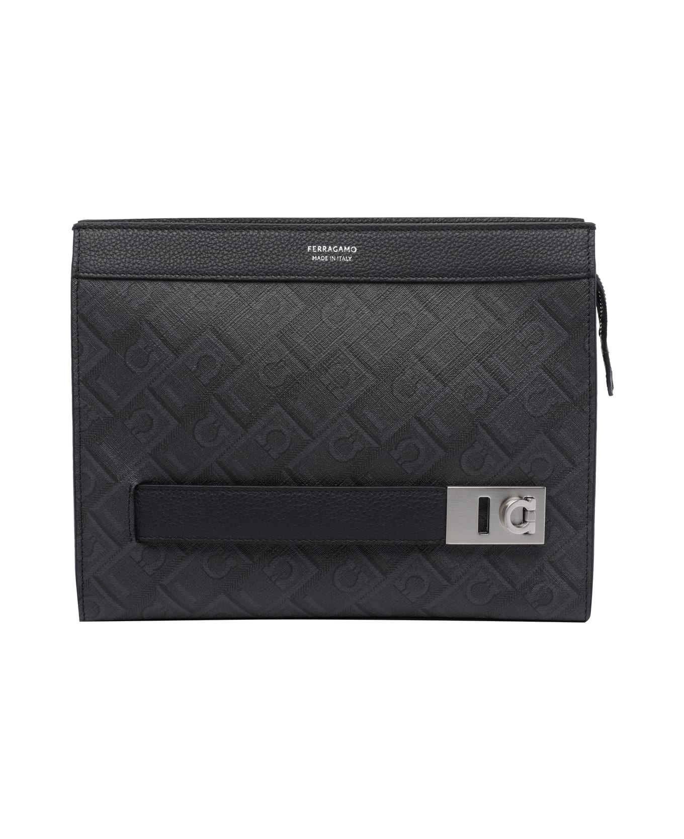 Ferragamo black crossbody bag, all over Ferragamo Monogram crossbody bag, zip closure, 2 inner open pockets and external pocket, adjustable and removable shoulder strap Composition: 100% Coated Fabric, Leather Trim