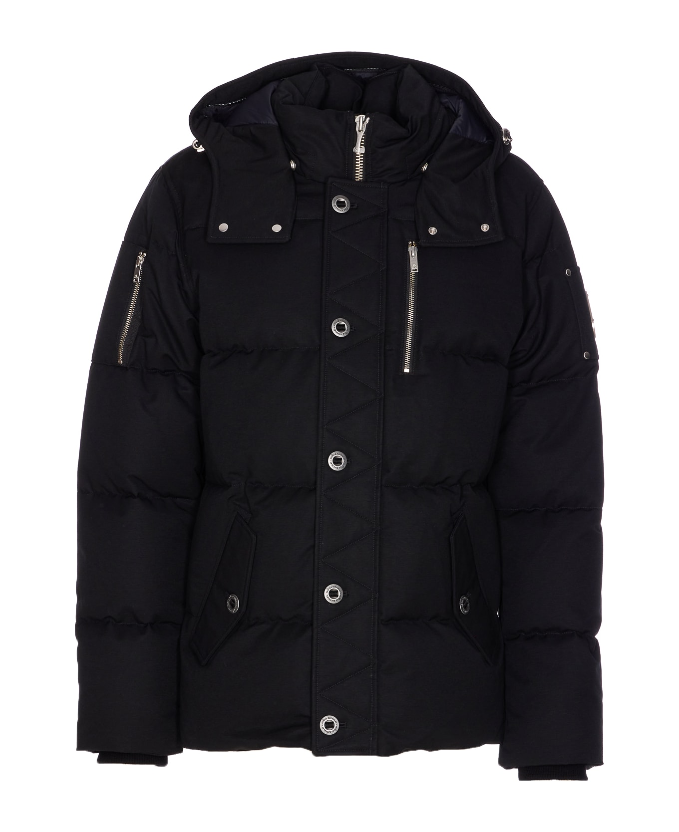 Moose Knucles black Original 3q jacket, zip and buttons closure, long sleeves, pockets, removable hood detail, padded, lateral patch logo Composition: 74% Cotton, 26% Nylon, 100% Recycled Nylon, 90% Duck Down, 10% Feathers