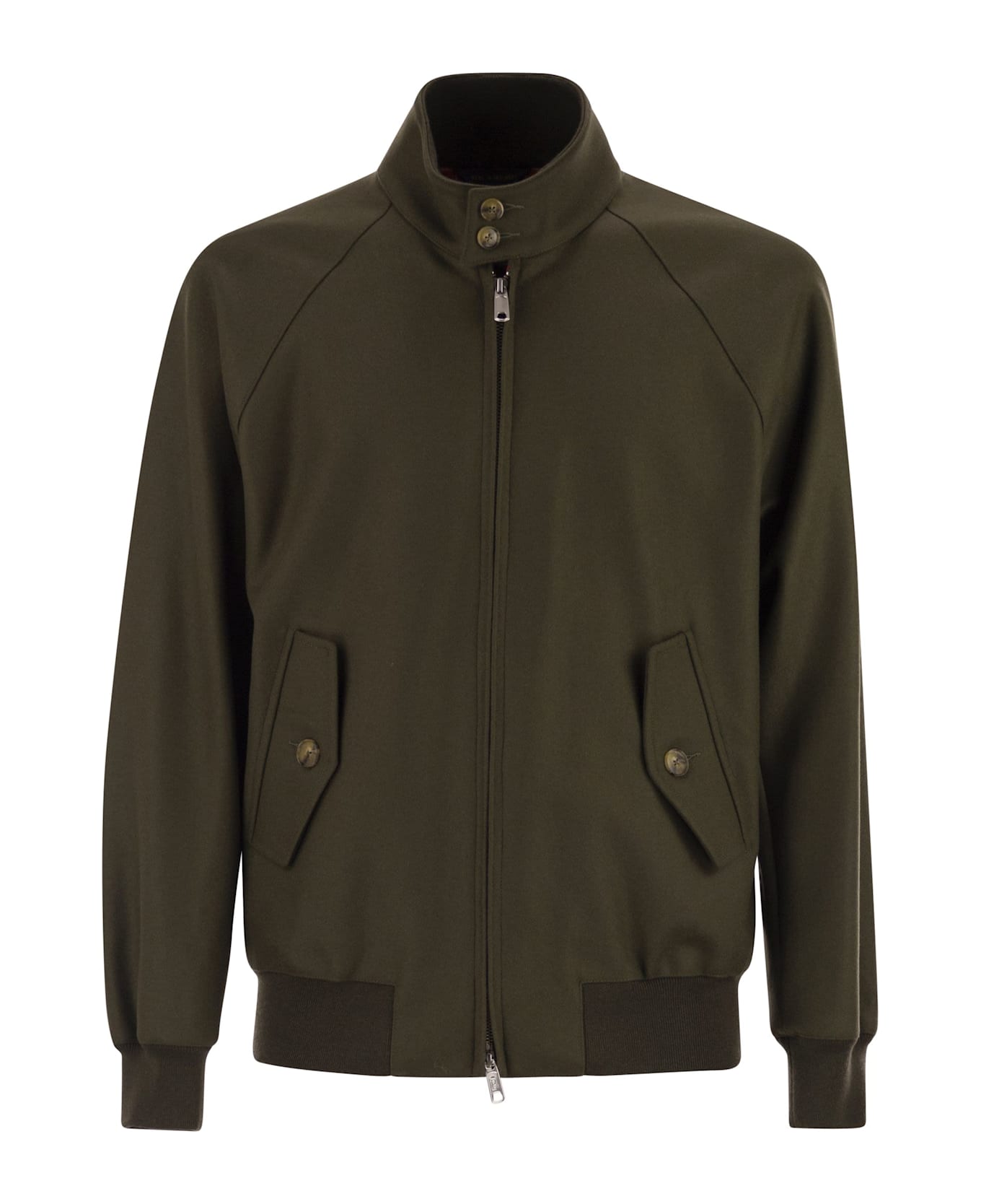 Get ready to fall in love with the G9 Melton, a winter version of the classic G9 Harrington jacket made from the finest blend of Italian wool and cashmere, making it one of the softest and most comfortable jackets imaginable. The lining is lightly padded for extra warmth and features the iconic Fraser Tartan. Perfect for a casual look, but also ideal for a more formal look, for example paired with our corduroy trousers. - Umbrella shoulder pad - Baracuta two-button collar with corduroy interior - Zip closure with double logo slider - Raglan sleeves for greater freedom of movement - Front pockets with flap and button - Ribbed cuffs and waistband for added protection - Inside pocket made from the jacket's outer fabric with customised button - Made from the finest blend of Italian wool and cashmere - Fraser Tartan lining in breathable 100% cotton Coolmax fabric - Lightly padded for added insulation DESIGNER ID: BRCPS1076UT2842 8185
