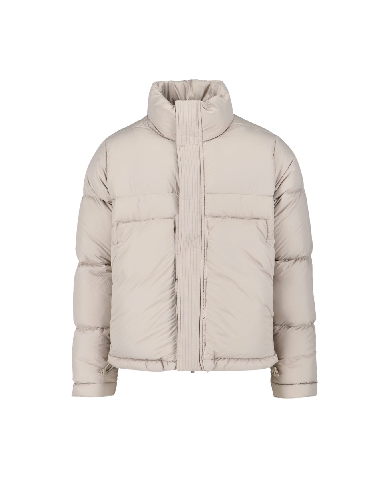 K-Way "Ripstop" beige fabric down jacket with quilted and padded design, high neck, button closure and double hidden zip, multicolor details, two side button pockets, elasticated cuffs, drawstring on the hem, straight hem.