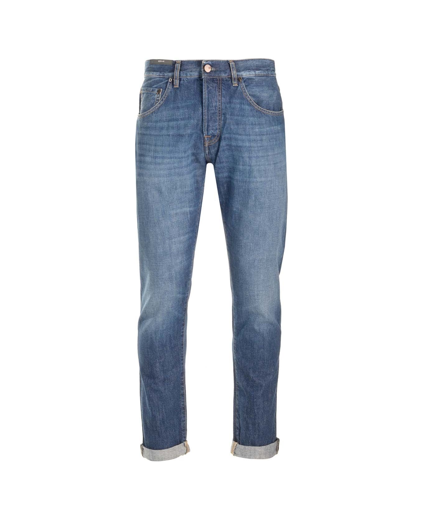 Soft blue stretch denim regular fit jeans in by PT Torino Denim with low waist, five pockets and zip and button fastening.