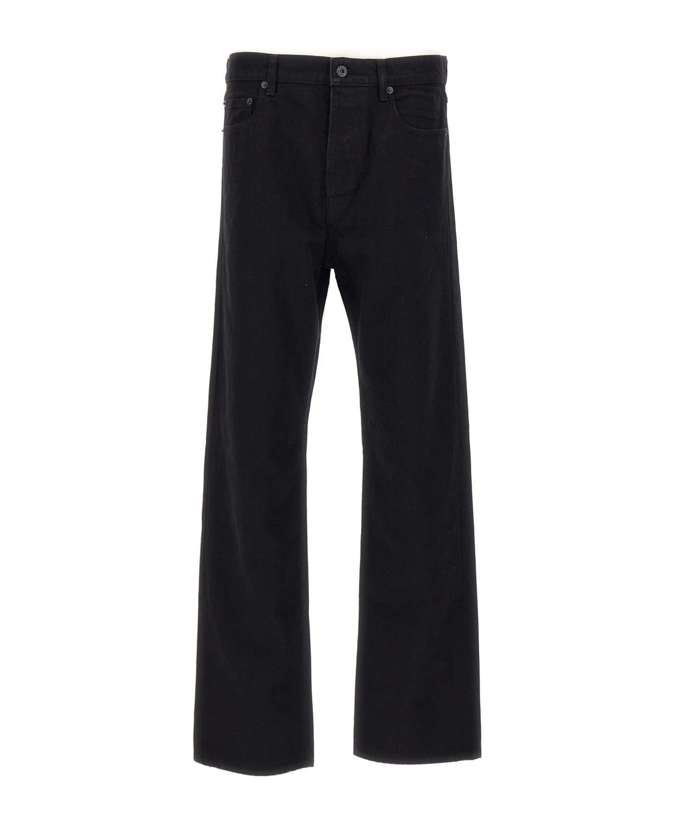 Kenzo Paris 'Rinse Asagao' men's Japanese Kaihara denim jeans, black, five pockets model, straight fit, straight leg, waist with belt loops, Kenzo Paris jacron on back, button fastening, perfect for a trendy look.
