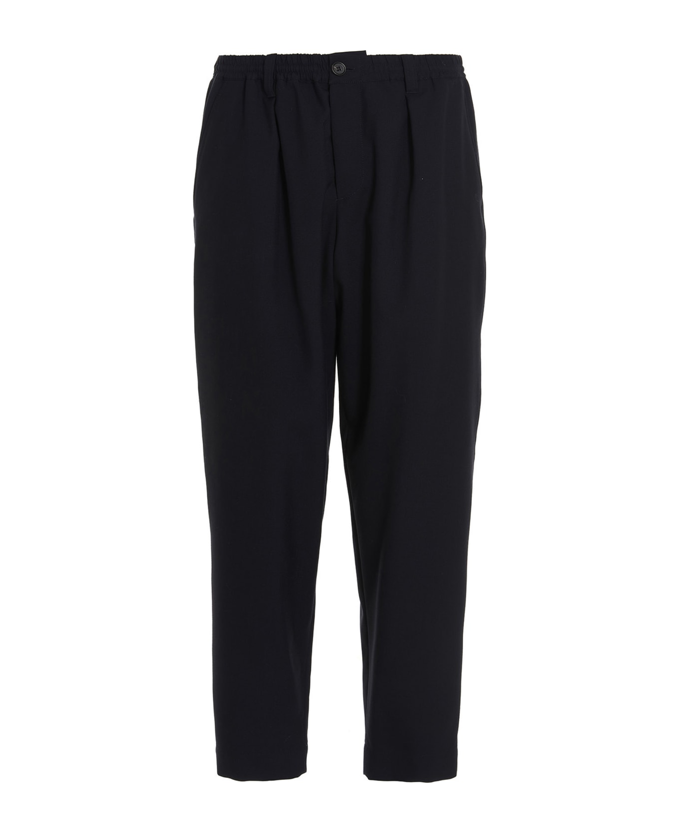 Cool wool cropped pants, with front darts, an elastic and drawstring at the waist, side slant pockets, and back welt pockets. Composition: 100% virgin wool