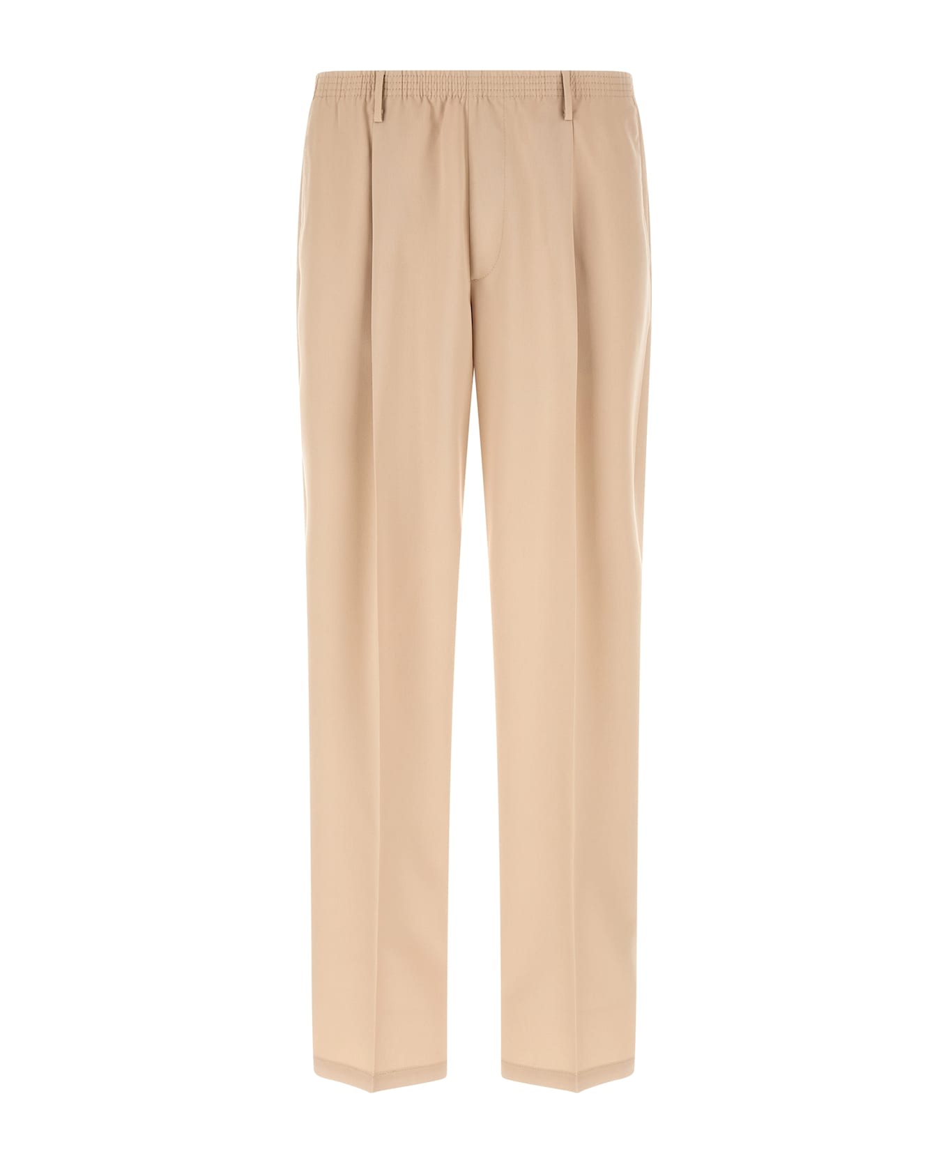 in viscose blend, elastic waistband, belt loops, slanted pockets and back pocket with hidden zip, straight leg, pleats, stretched pleat. Composition: 71% polyester 23% viscose 6% elastane