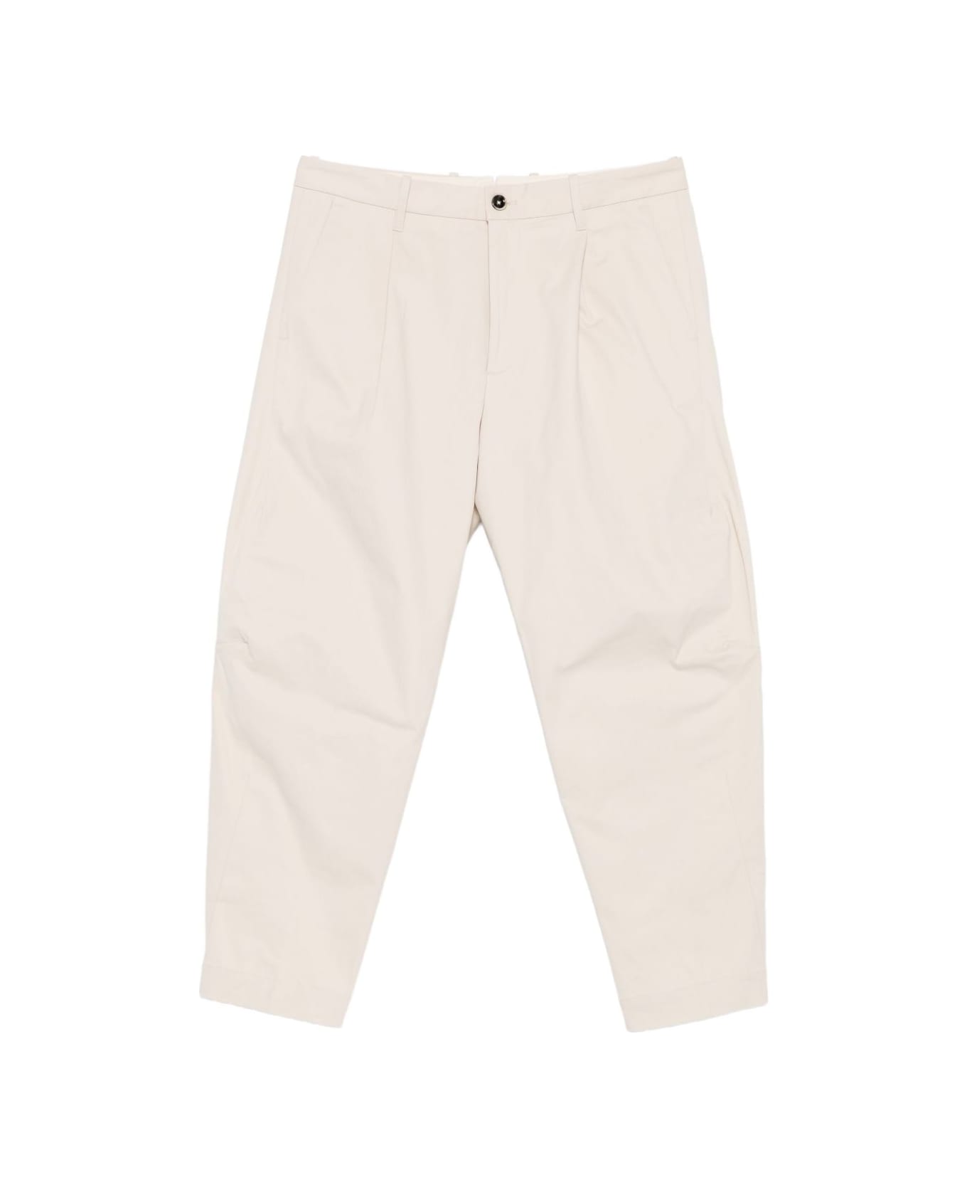 ecru pleated front side pockets front button and zip fastening straight leg cropped length