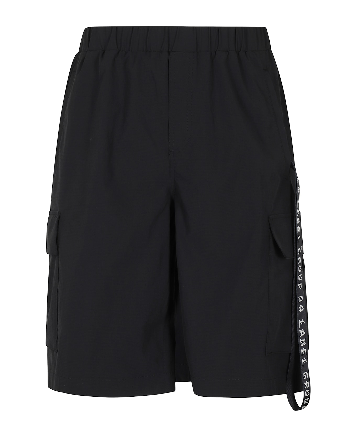 Liz Bermuda Shorts - 44 Label Group - Black color - Stretch nylon fabric - Elasticized waistband - Wide leg - Side cargo pockets - Removable logoed drawstring - Loose fit