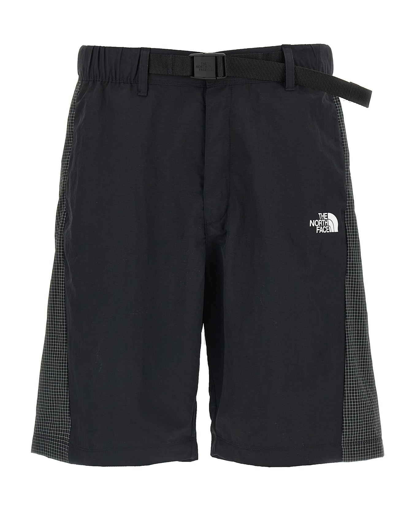 'NSE' bermuda shorts in wrinkled effect technical fabric with ripstop side inserts, front logo print, wide leg, elastic waistband with integrated adjustable belt with tuc closure, pockets.
