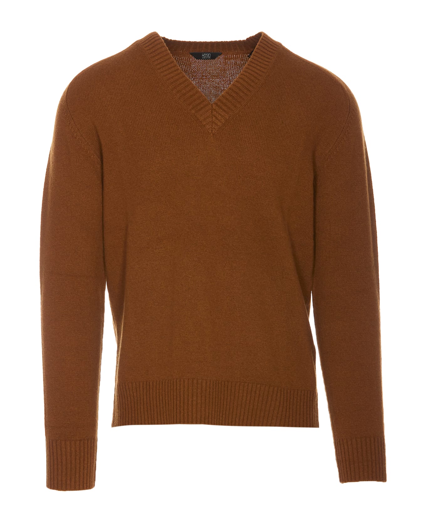 Hosio brown sweater, V-neckline, long sleeves