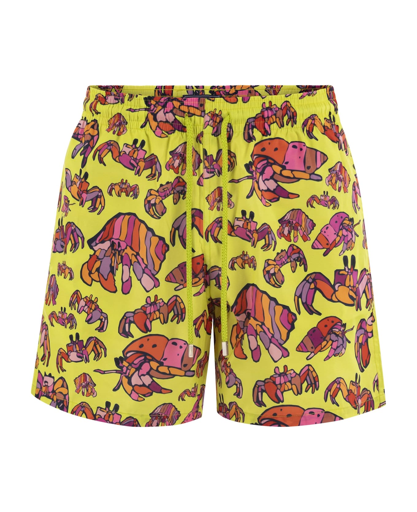Minimize bulk with these lightweight beach shorts that conveniently fold into the back pocket. They feature a convenient elastic waistband and a drawstring finished with engraved metal ends. - Ultralight material - Elasticized waistband with drawstring and Vilebrequin logo engraved on zamak ends - Two side pockets - Two rear grommets - Shorts can be folded completely into the back pocket DESIGNER ID: MAHCJ308 413