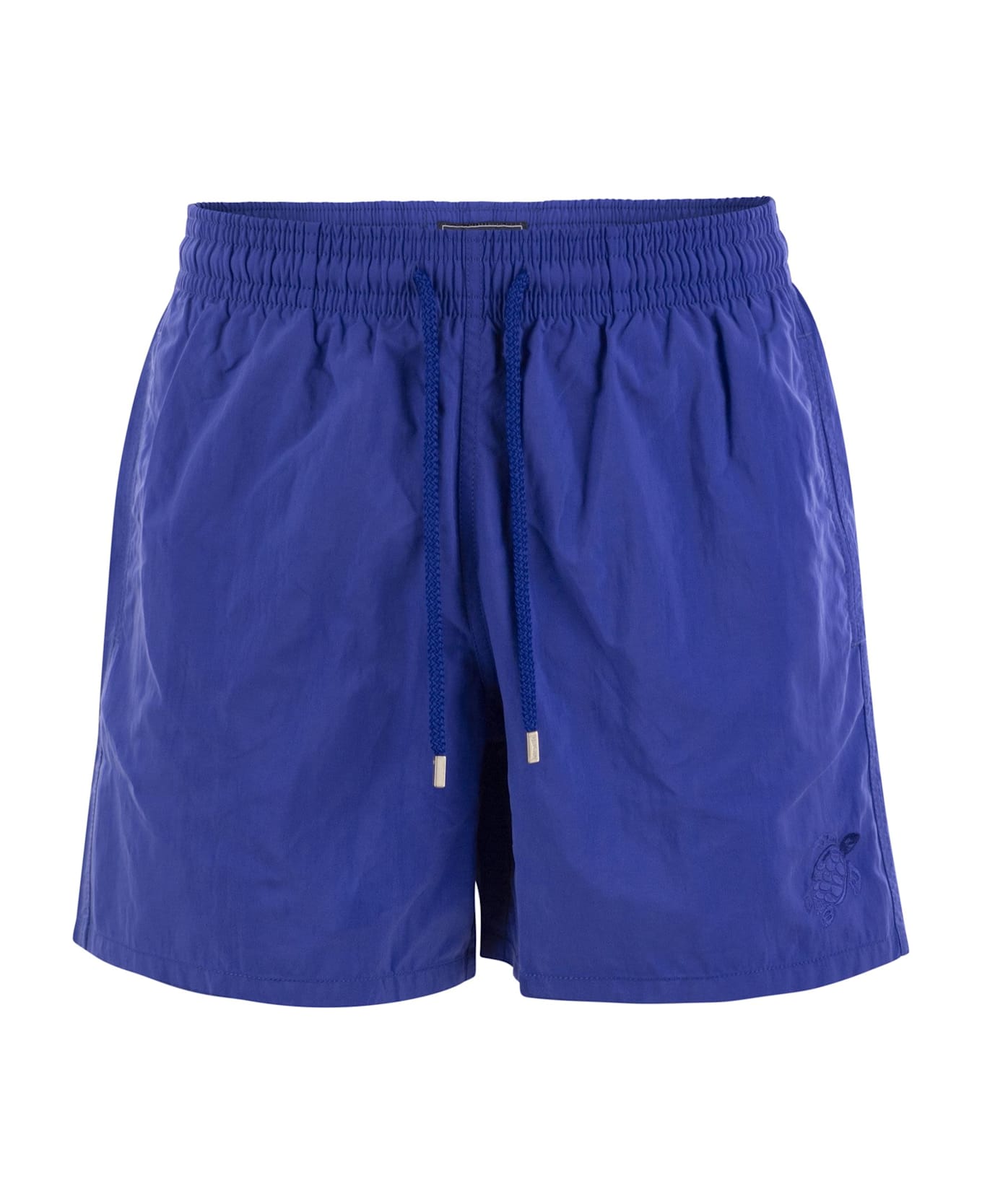 A stylish swimsuit that hides a surprise: the iconic turtle print appears upon entering the water. Made of recycled polyamide, it features a comfortable elasticated waistband. - Swimsuit with elasticated waistband and drawstring with Vilebrequin logo engraved on zamak ends - Side pockets - Hand-sewn back pocket for perfect visual continuity with the swimsuit print - Two back grommets allow water to drain away to reduce the balloon effect when exiting the water - Integral water-resistant mesh lining (100% polyamide) - Fabrics are treated for quick drying DESIGNER ID: MOOCD133 613