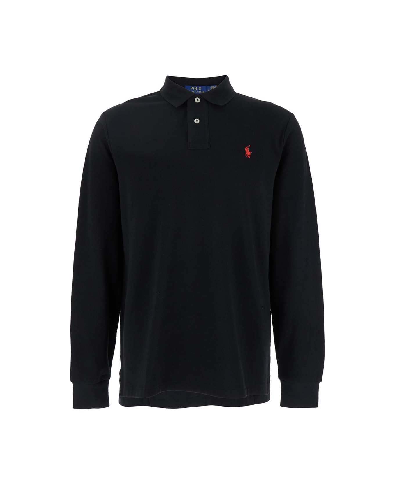 "Custom Slim Fit" Polo Black Classic collar Long sleeves Front button closure Embroidered Pony logo on the front Elasticized cuffs Straight hem Cotton Regular fit