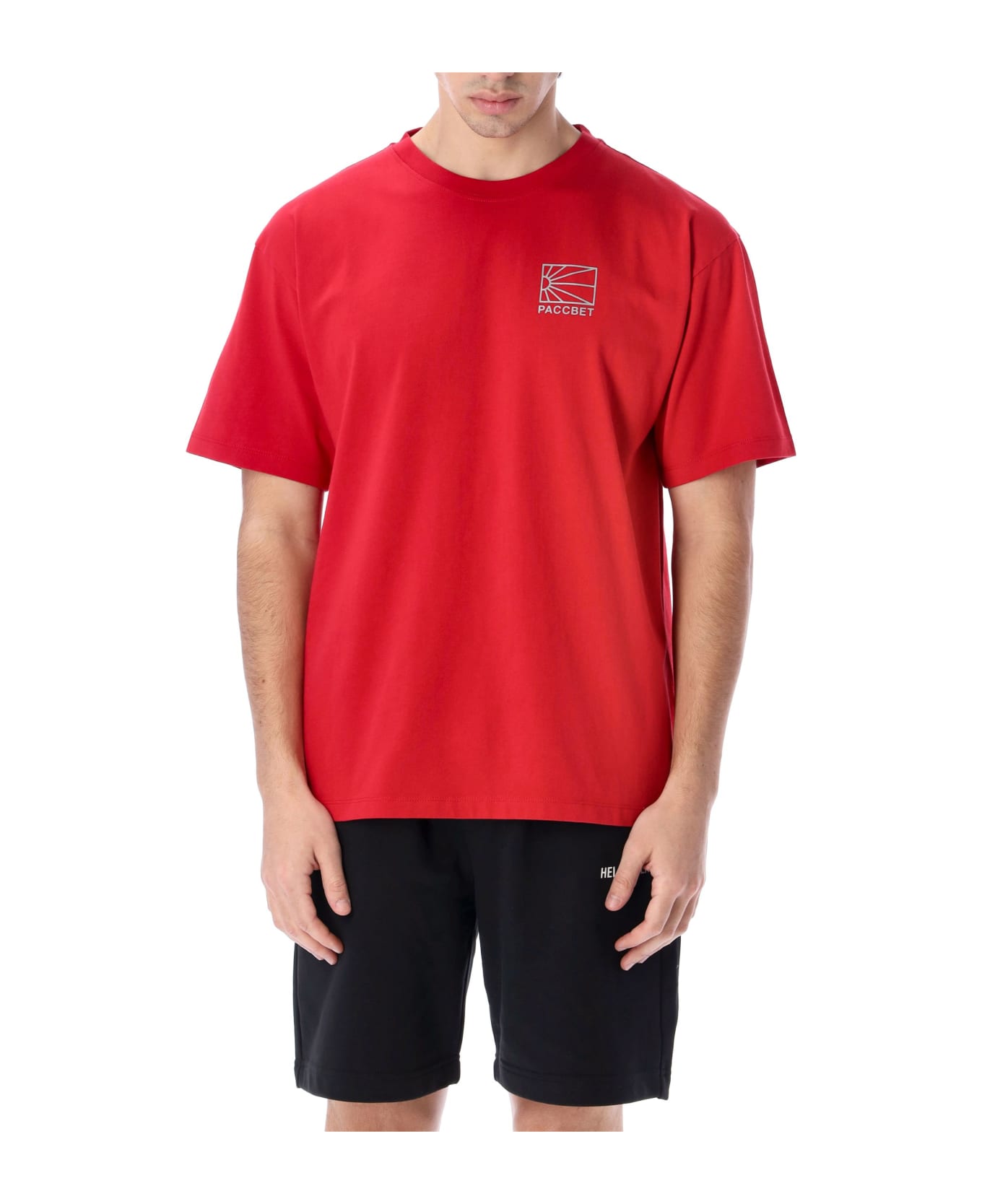 Cotton Logo Print T-shirt By Paccbet. Featuring: - Ribbed Crewneck - Contrasting Logo Print At Chest - Short Sleeves - Regular Fit - Straight Hem