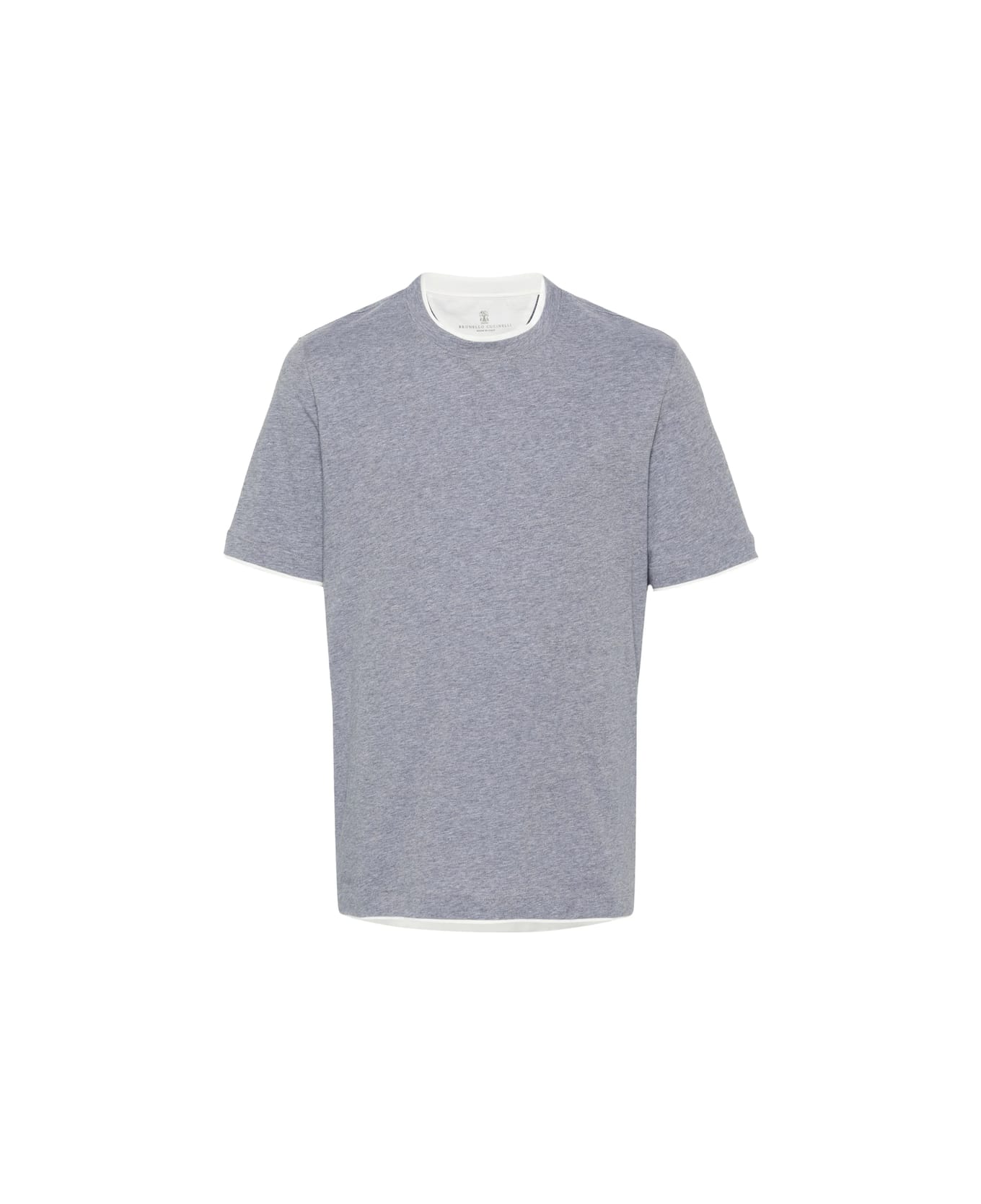 grey cotton jersey texture faux-layering design contrasting trim crew neck short sleeves straight hem