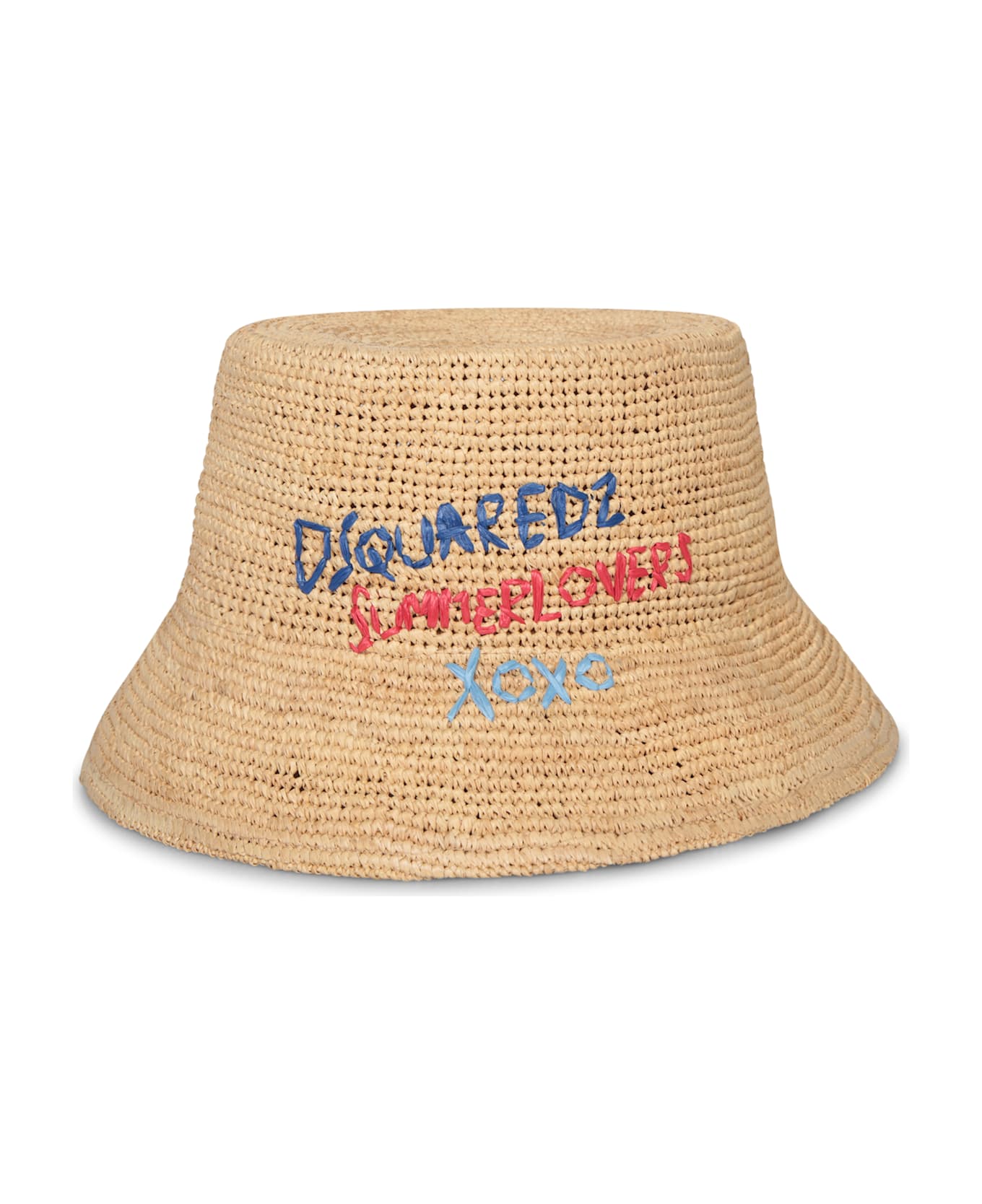 Embrace summer styling with DSQUARED2's Logo Raphia Bucket Hat. Crafted from natural raffia, this piece is enhanced with multicolored embroidered details that add a splash of vibrancy to its classic silhouette.