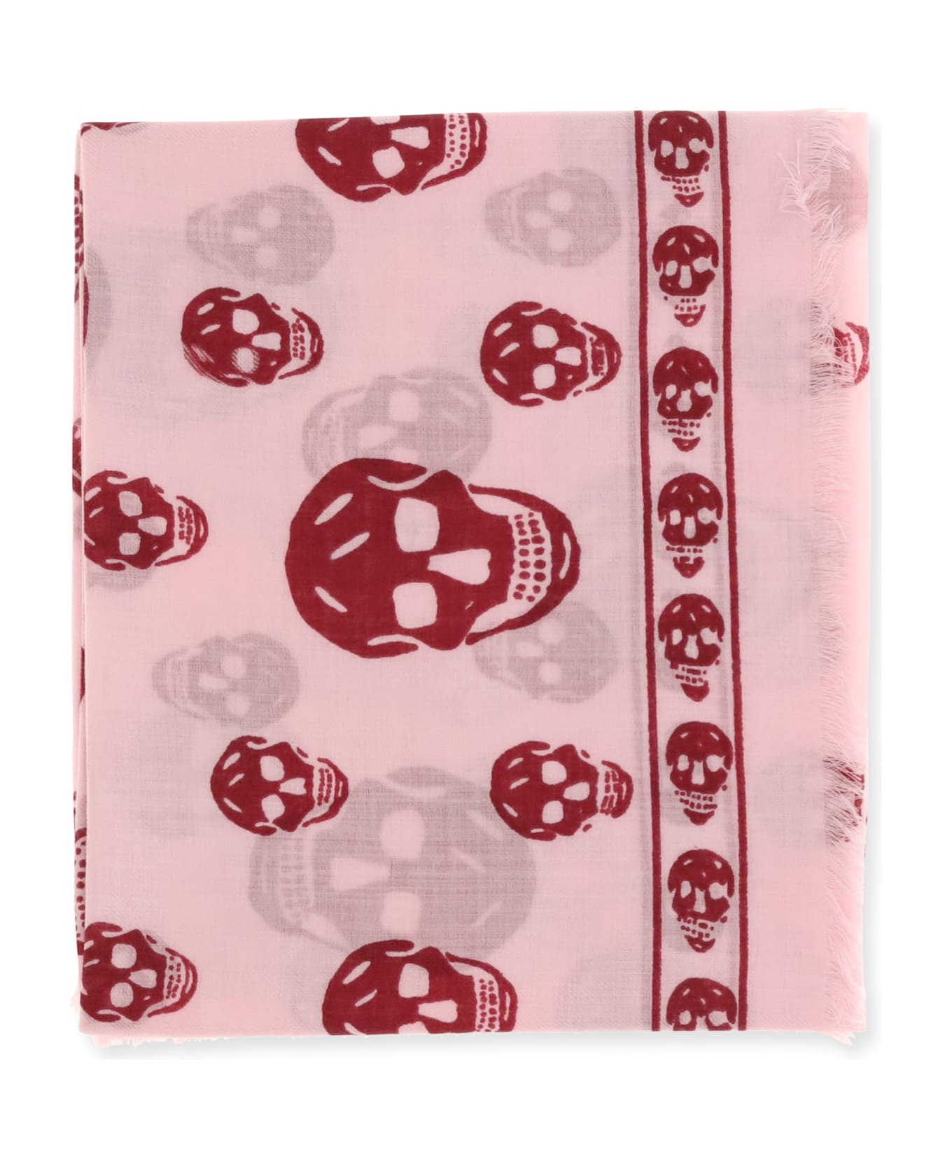 The skull foulard by mcqueen is crafted from a silk and modal blend in black and dark grey, featuring an all-over skull motif. the fringed edges are accented with skull details and the mcqueen logo, creating a distinctive, contemporary accessory.