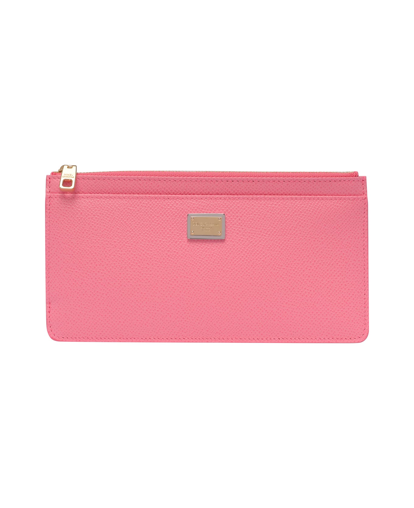 Dolce&Gabbana pink Logo plaque cards holder, zip closure, 2 external open pockets, 6 slots