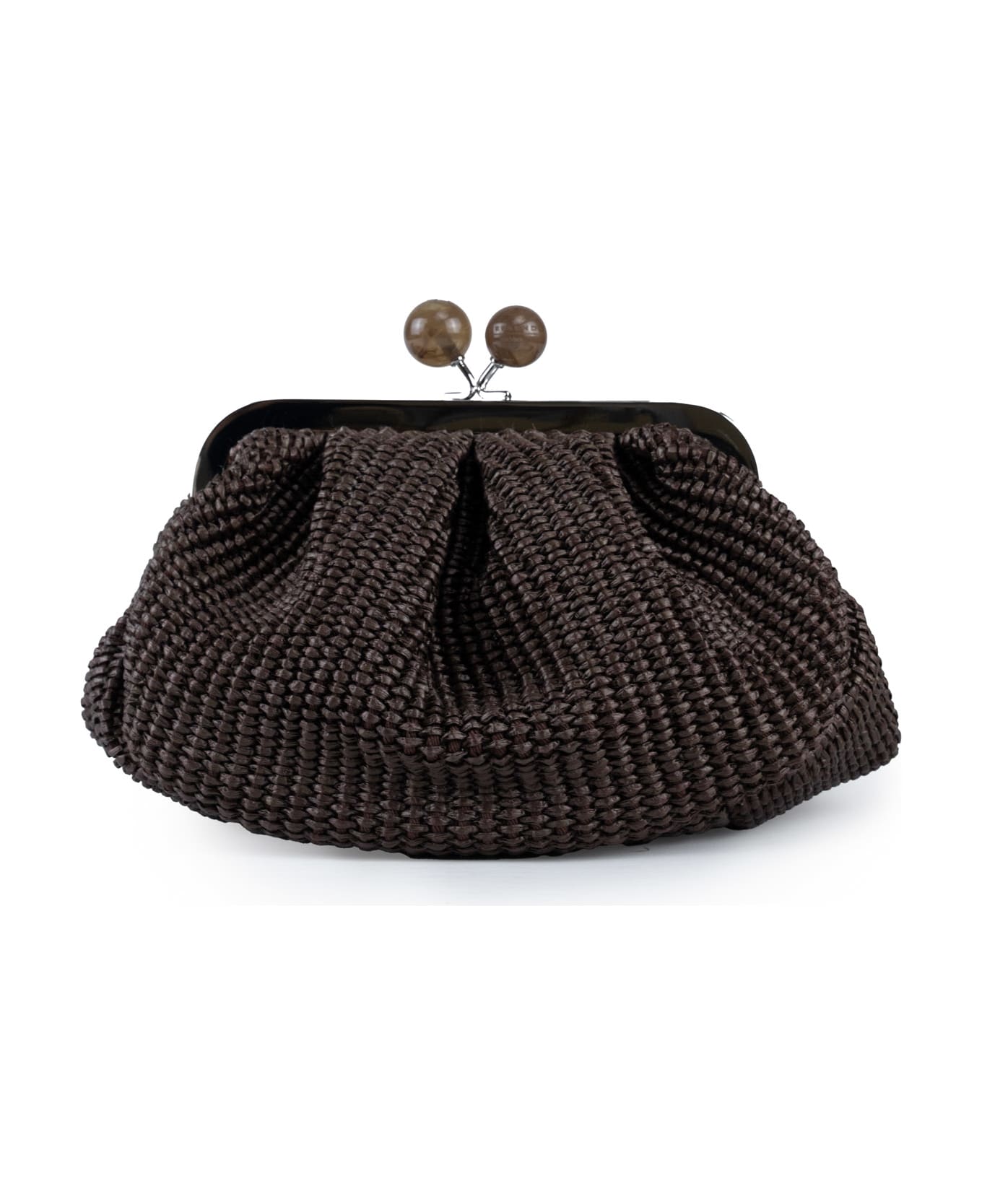 small women's raffia clutch: rafia effect fabric closure with maxi spheres with logo removable metal shoulder strap removable leather shoulder strap lined composition: 52% cotton, 48% polyamide lining: polyester