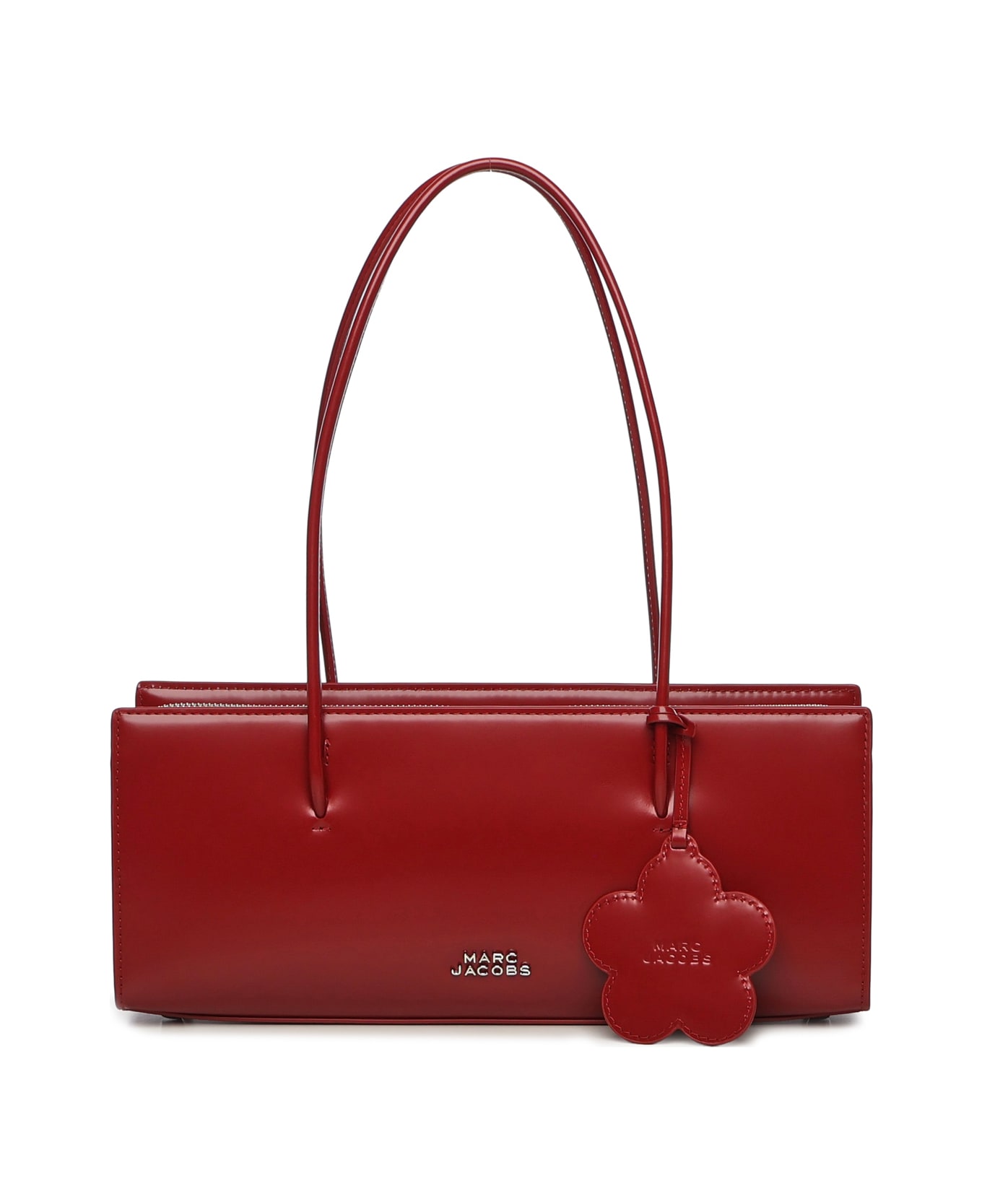 - Made of shiny leather - Metal logo on the front - Zip closure - Removable flower-shaped mirror on the front - Dimensions: 32. 5 x 13. 5 x 10 cm - Color: Red