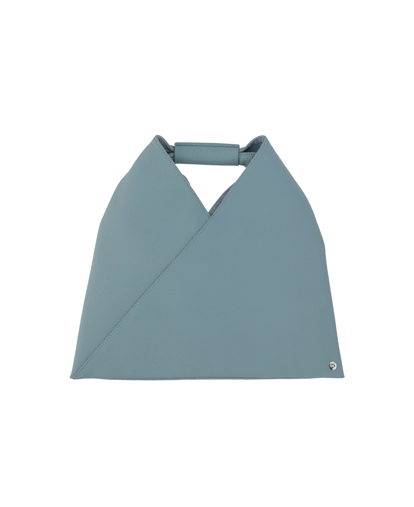 Calfskin handbag by mm6, single handle, triangular shape, embroidery detail on back, snap button closure, adjustable bottom with snap buttons, single interior compartment. Composition: 100% % Calf Leather Bos Taurus