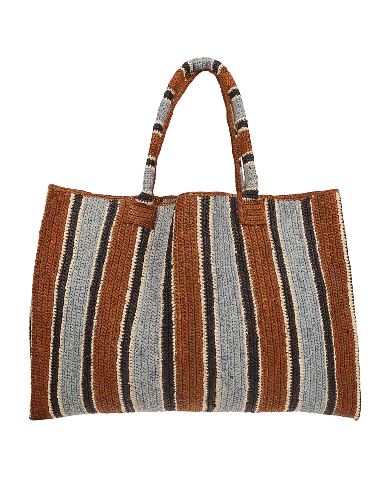 Raffia shopper bag handmade in Madagascar Colour: light blue - brown - black