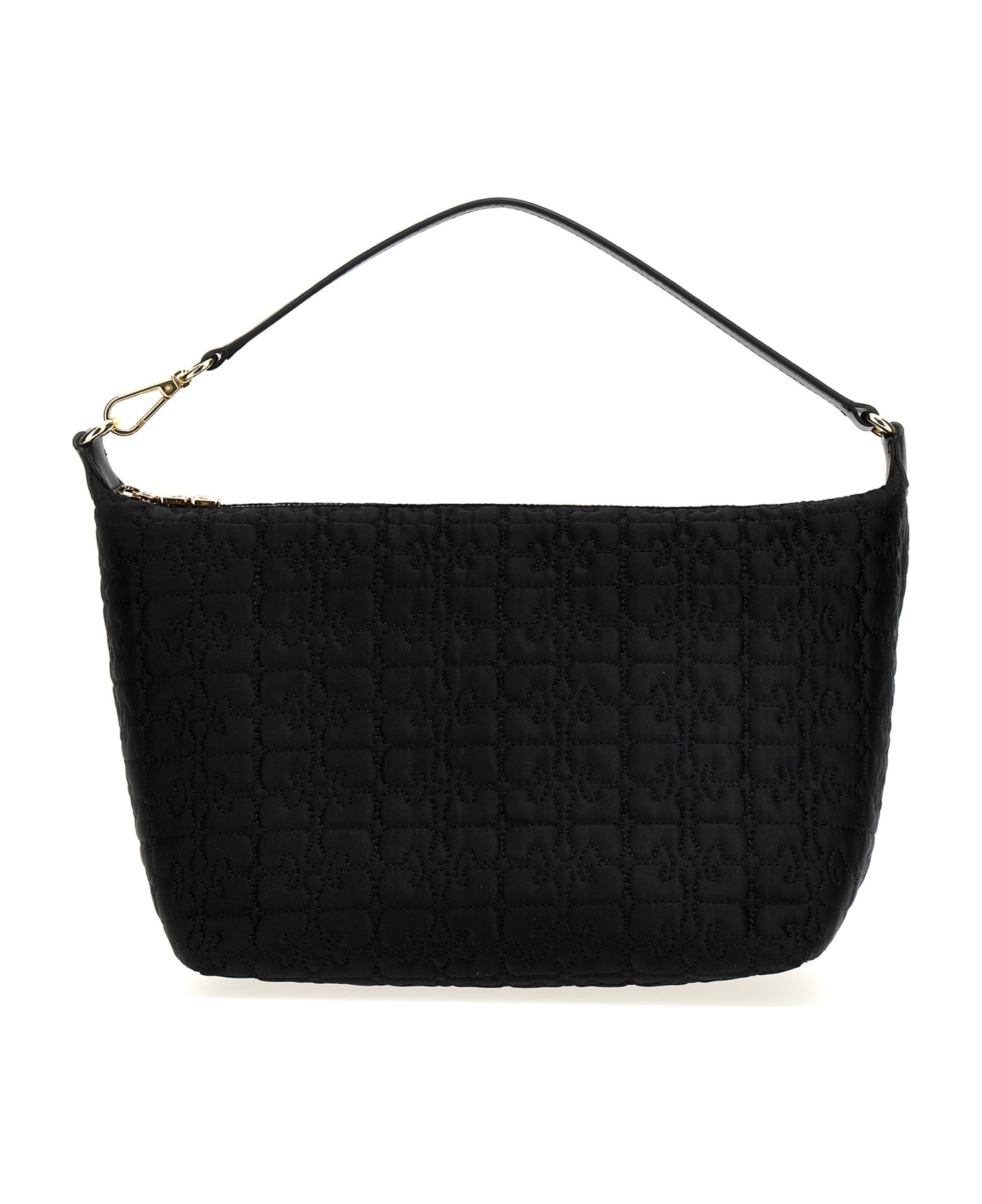 Black Medium Butterfly Pouch shoulder bag in quilted fabric, zip closure with logo, removable handle on one side. SUSTAINABLE: Product made from recycled polyester. Composition: 100% polyester