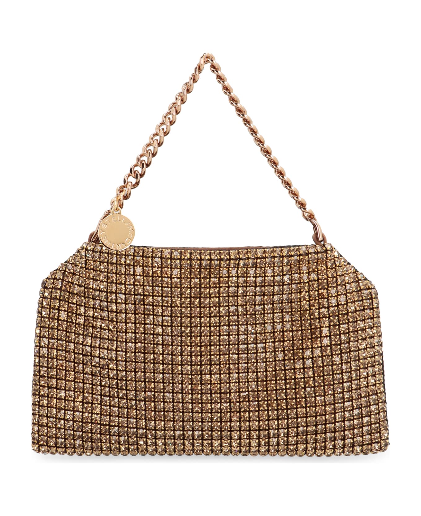 Crystal details top zippered closure chain handle removable chain shoulder strap gold tone metal hardware fabric lining. 100% polyester Composition: 100% % Polyester