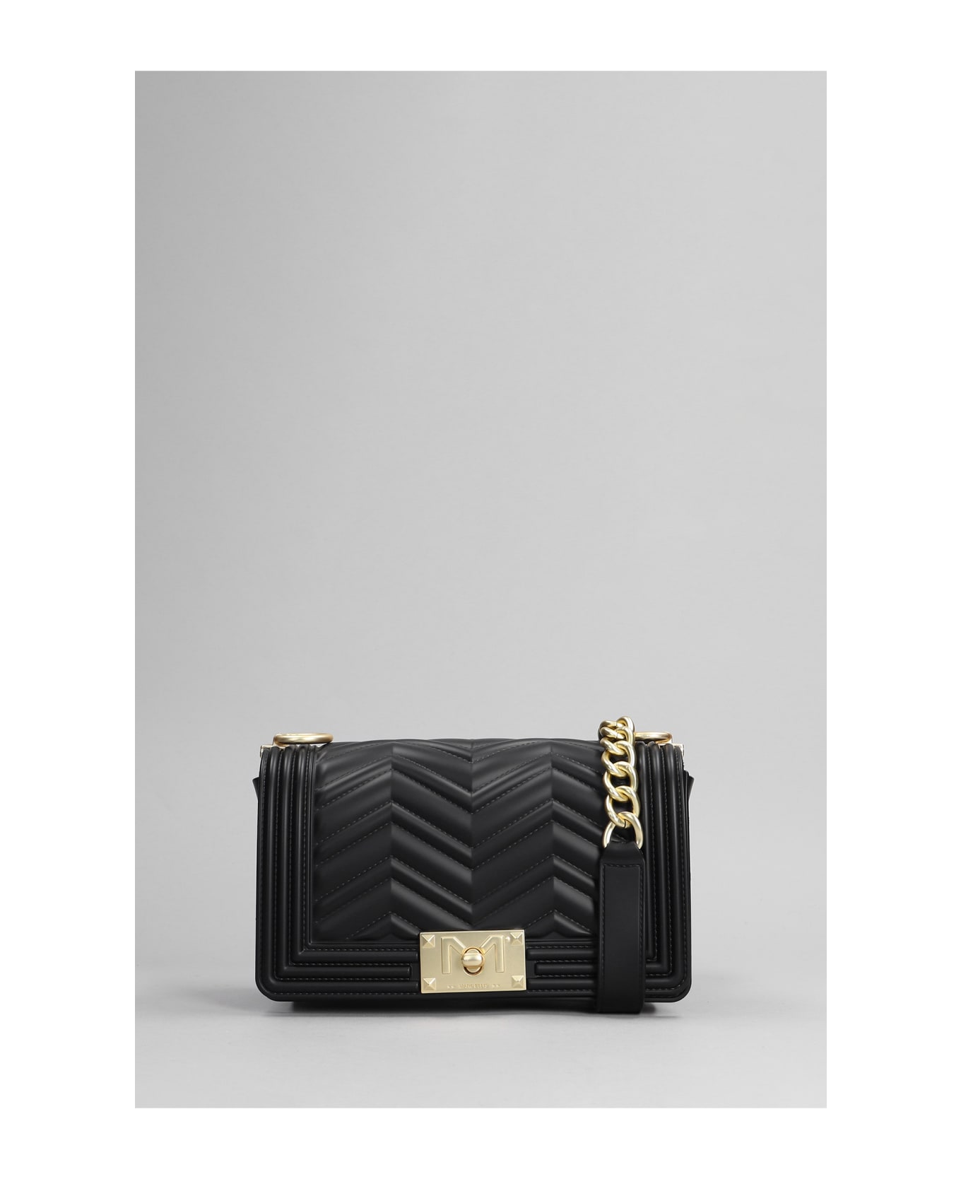 Flat S Manhattan Shoulder bag in black PVC, chain shoulder strap, push- lock fastening, quilted design, Made in Italy, 100% artificial leather, Height 110 mm, Width 200 mm