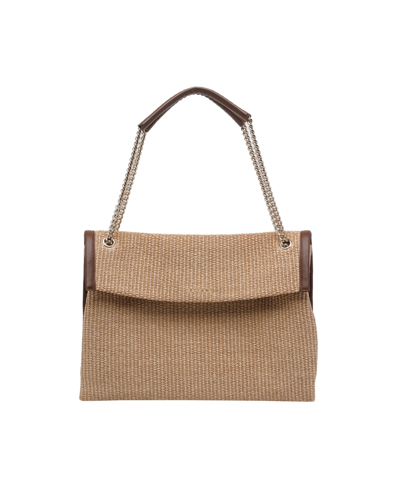 Orciani beige Medium Venus shoulder bag, magnetic closure, adaptable sliding chain strap, rafia model Composition: 100% Raffia, Leather Trim