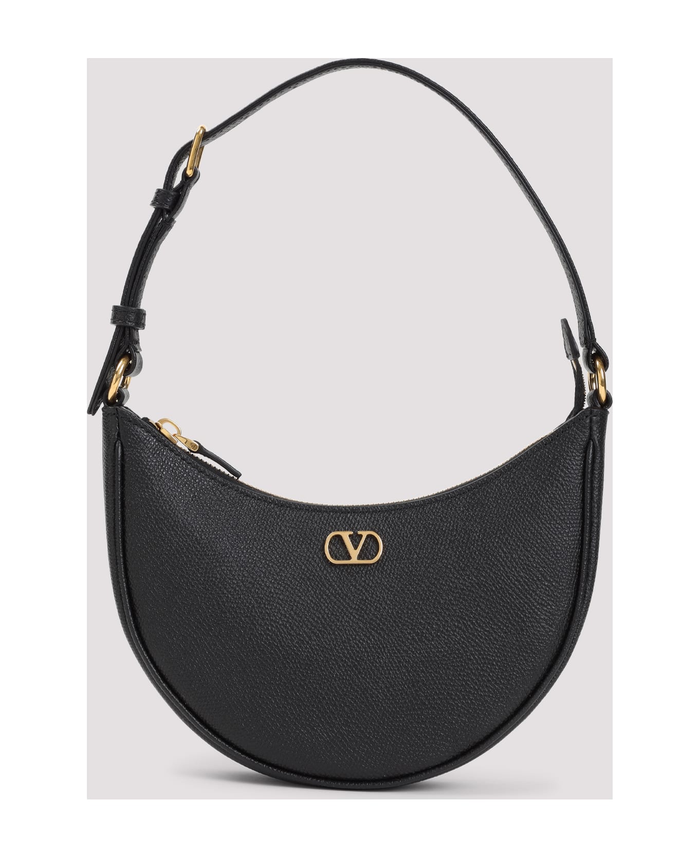 Valentino Garavani Black Grained Calf Leather Mini Hobo V Logo Signature Handbag. Pure black grained calf leather handbag, top adjustable shoulder strap, top zipped fastening, front gold-tone metallic signature V-logo, one main compartment. Gold-tone hardware.