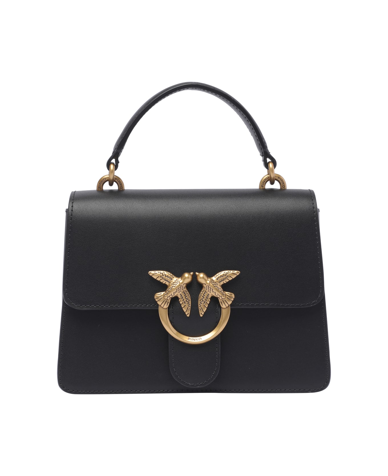 Pinko black Mini Love one handbag, magnetic closure, 1 handle, adaptable and removable strap, frontal golden