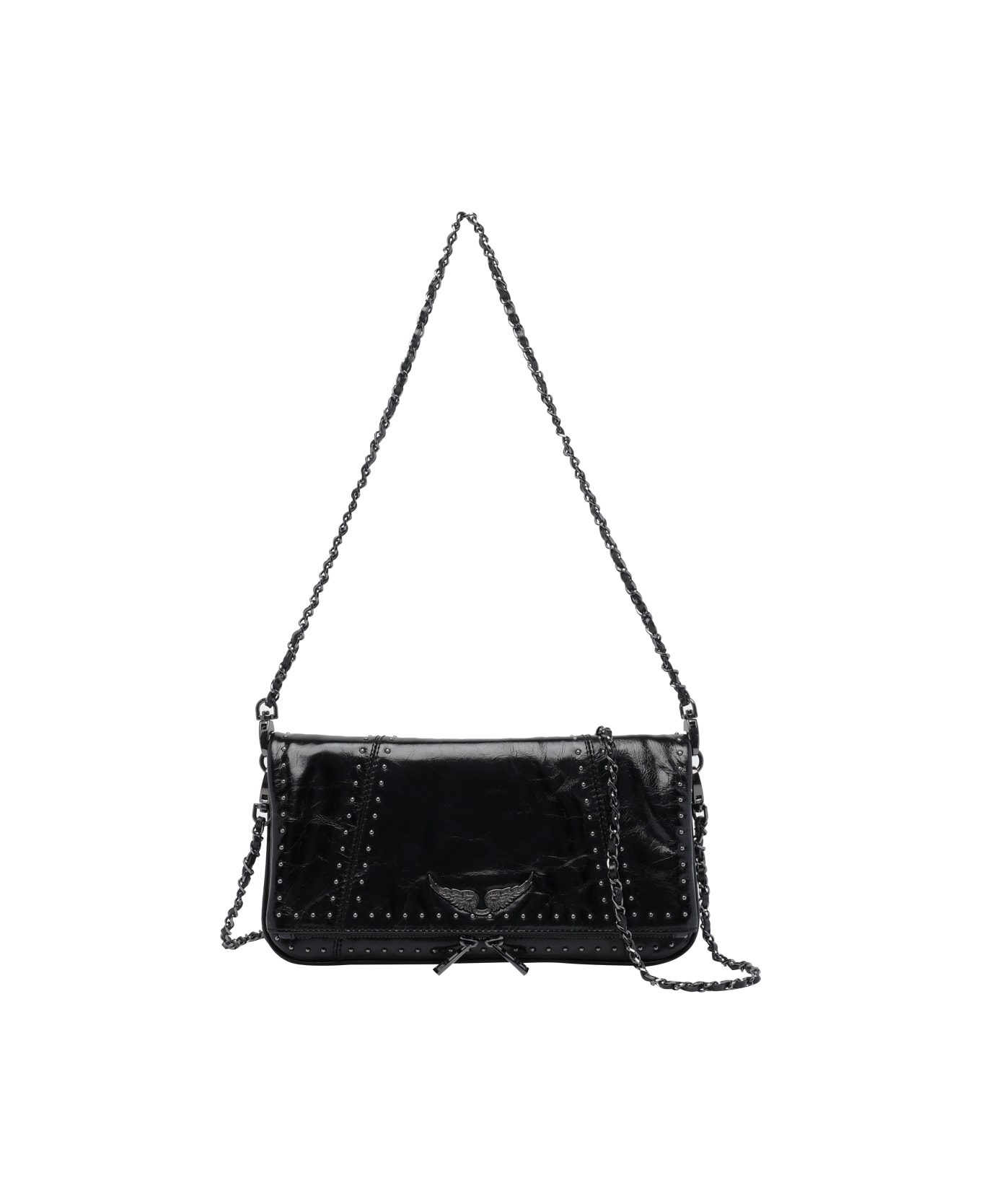 Zadig&Voltaire black Rock Vintage studs crossbody bag, magnetic closure, 2 external zipped pockets, removable strap