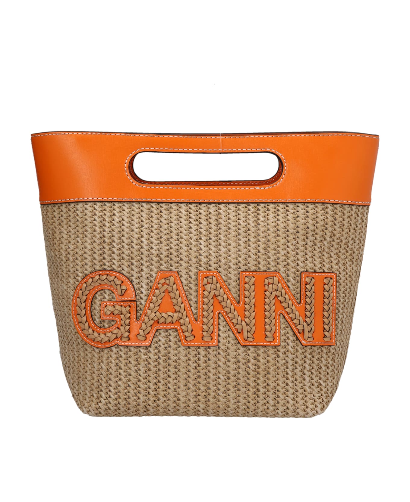 Small Raffia Bikini Tote' crossbody bag in leather and raffia with top handle, adjustable and removable shoulder strap, and a front logo. : This product is made in recycled leather. Composition: 70% polyurethane 10% nylon 20% recycled leather
